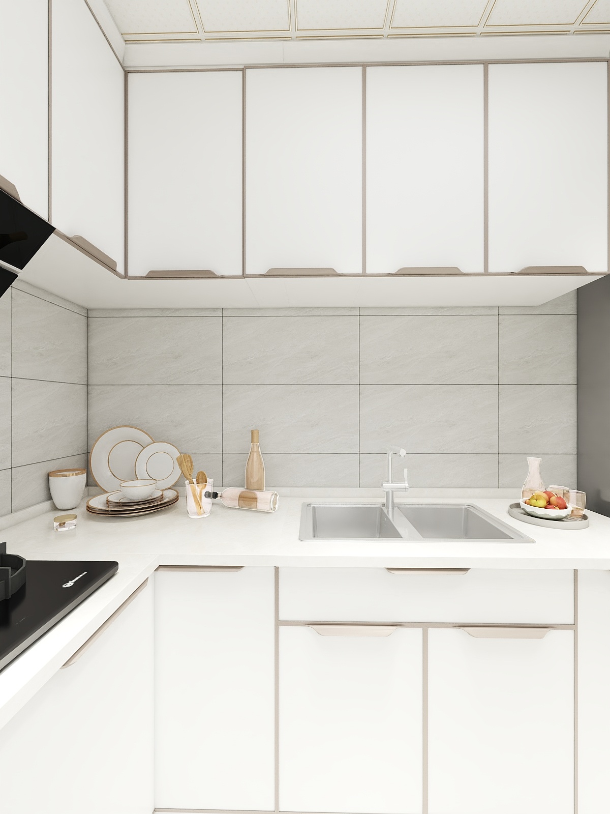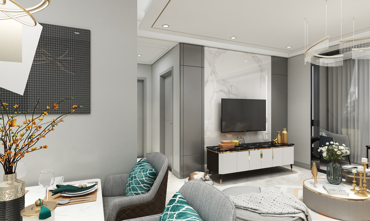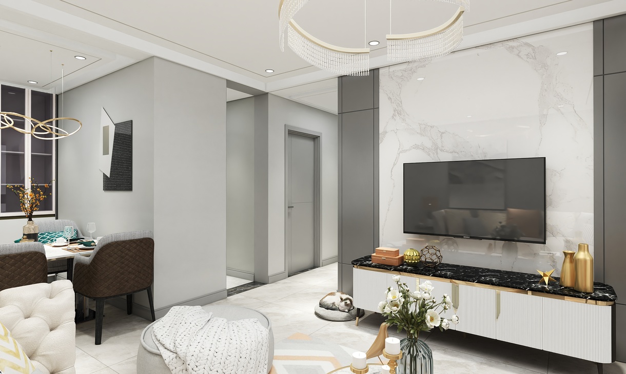 大理石臺面、精美的花瓶與酒杯共同烘托熠熠生輝的怡人氣氛,展現(xiàn)溫馨雅致的生活情境。