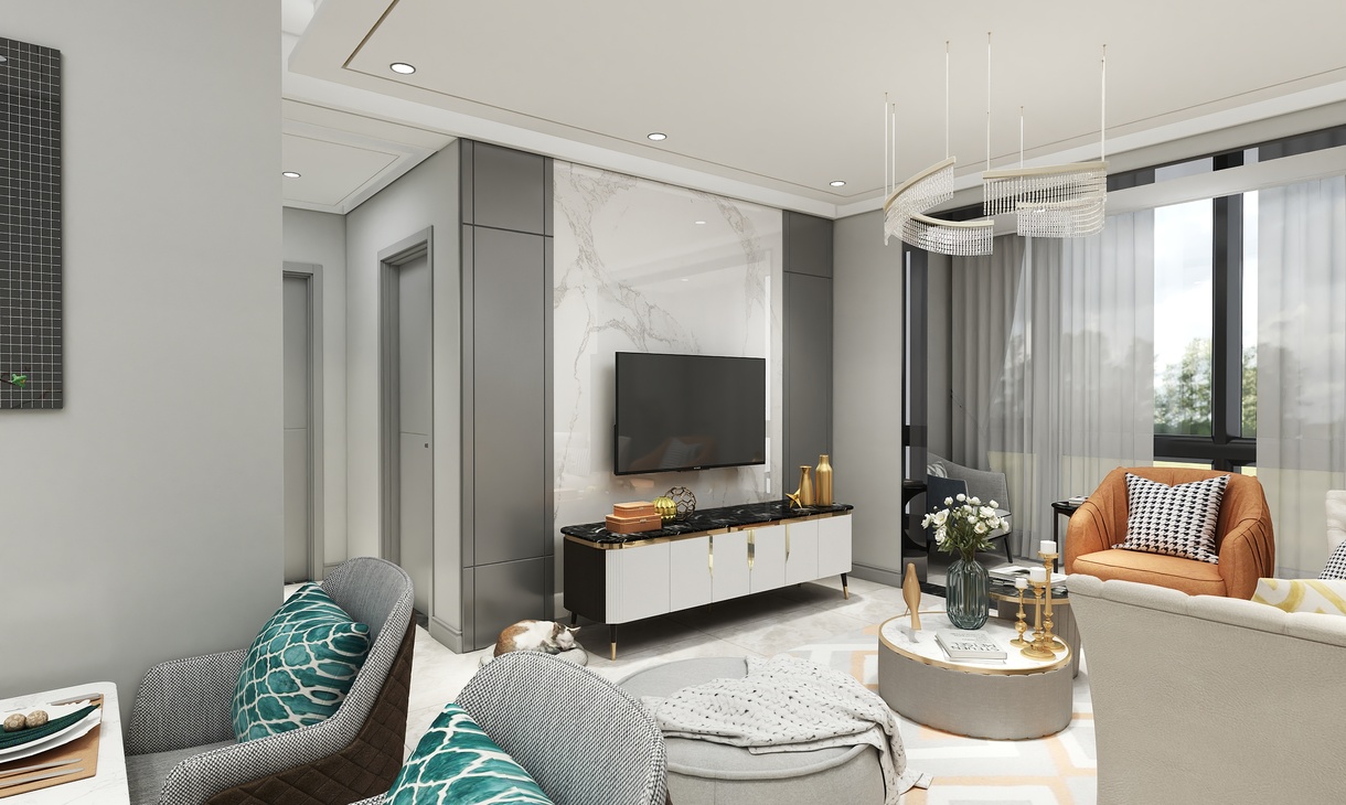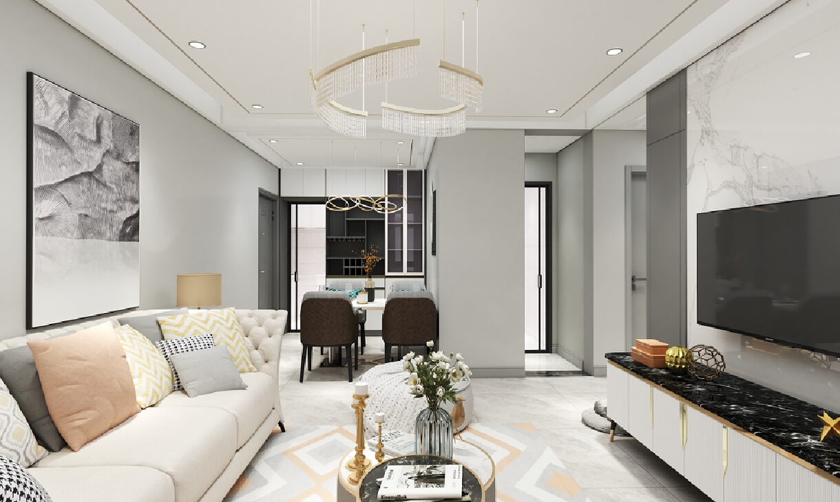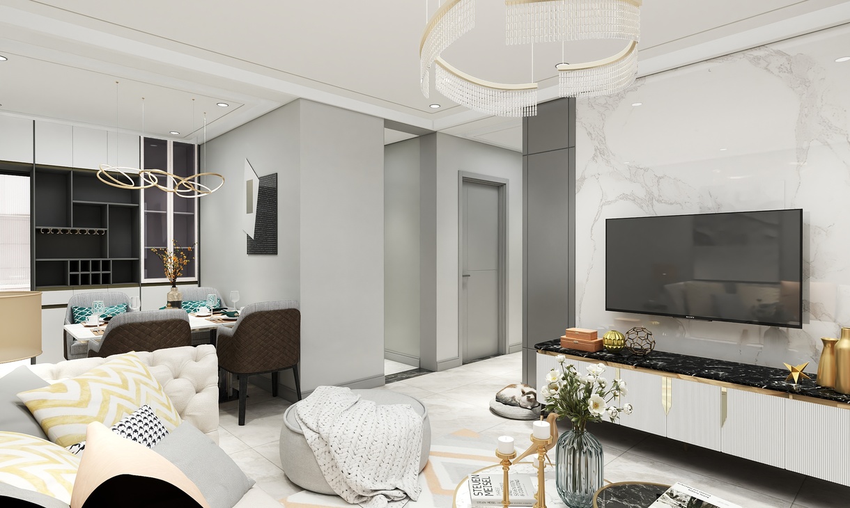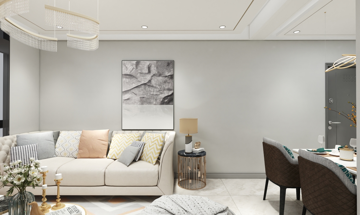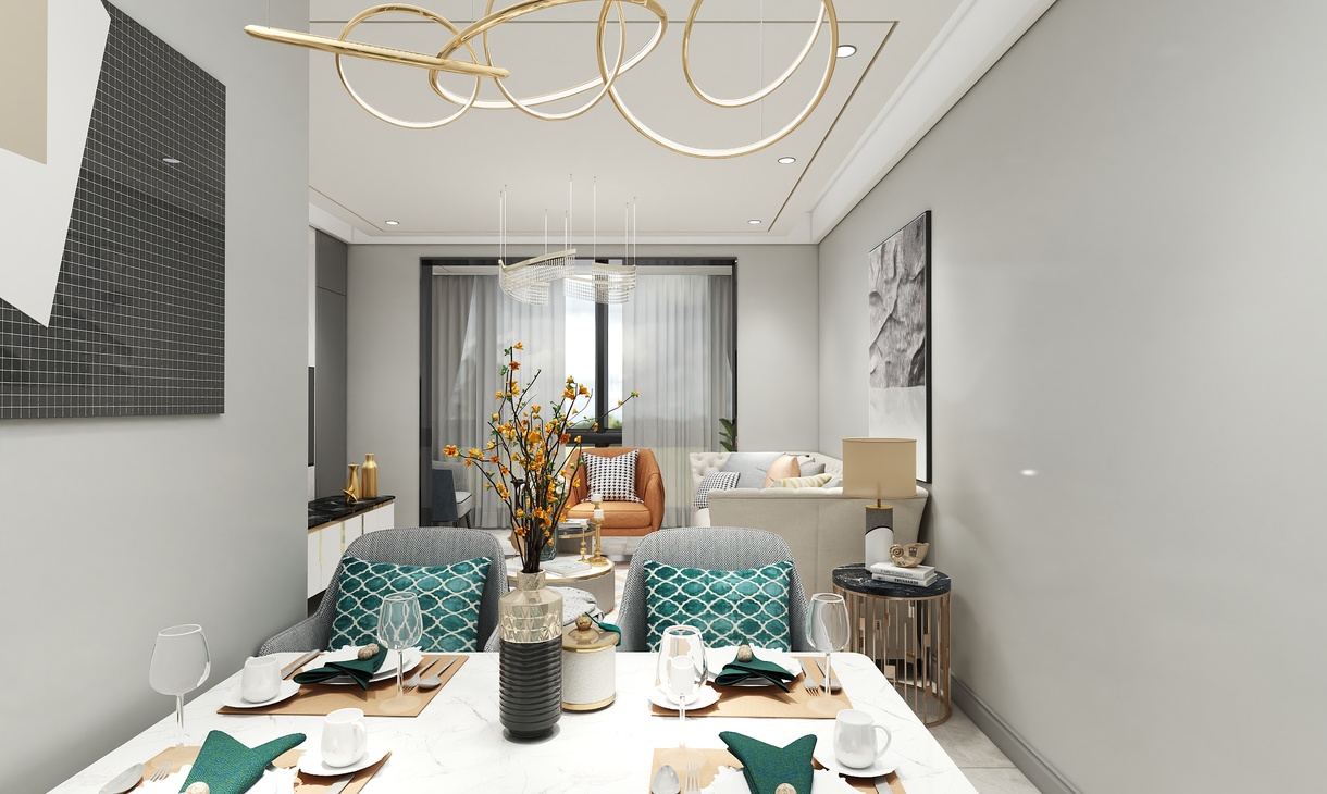 藝術(shù),來源于生活,又高于生活。步入客廳,不同灰調(diào)的深淺明暗,理性又自由的律動,通過秩序與想象的碰撞,打破過于嚴(yán)謹(jǐn)?shù)木惺a(chǎn)生放松愉悅的視覺享受,將設(shè)計描繪的生活美學(xué)徐徐展開。設(shè)計將生活的邊界淡化,開敞的客廳與餐廳、陽臺貫通共融,功能與美學(xué)在此結(jié)合,家人情感的交流隨之升華。這一方妙趣橫生的空間,自此擁有了更多可能性,派對、就餐、品酒、聚會……演繹豐富社交生活方式的理想居所。
