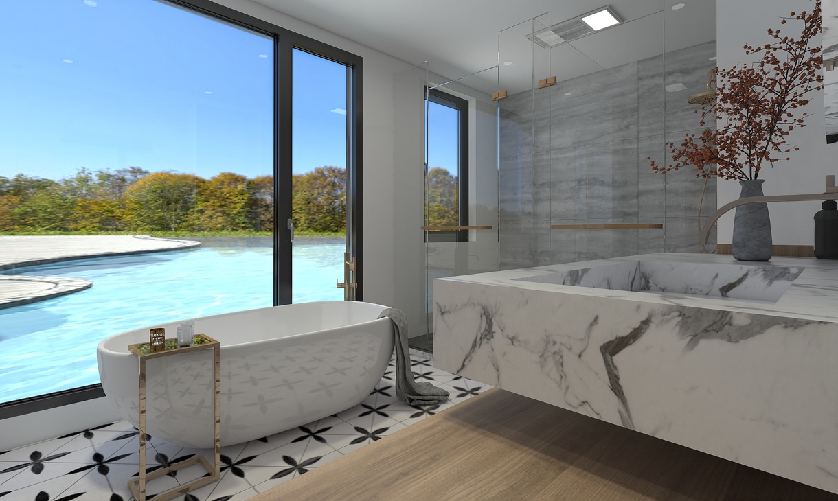 大落地窗觀景,透光性好,中心水景一覽無余,干濕分區分明,使沐浴成為享受放松的事。
