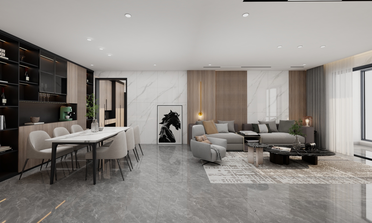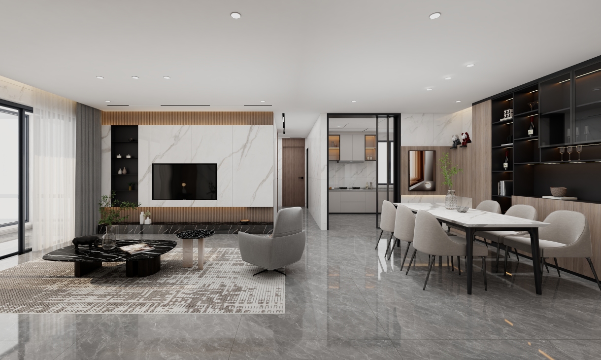每個空間至少2張效果圖+1張全案全景圖展示,方案描述完整,所有空間需命名。