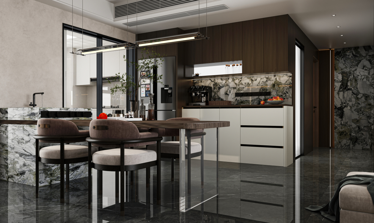 每個空間至少2張效果圖+1張全案全景圖展示,方案描述完整,所有空間需命名。