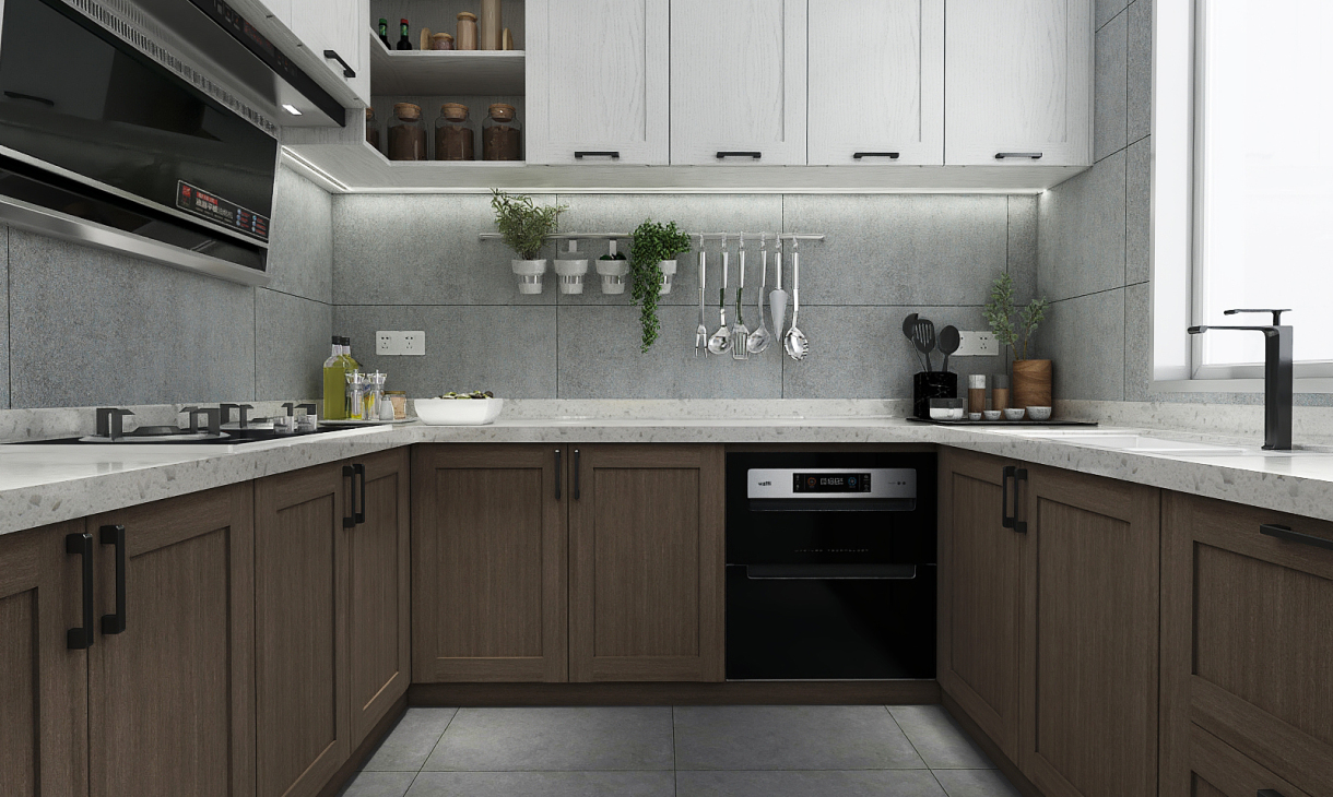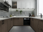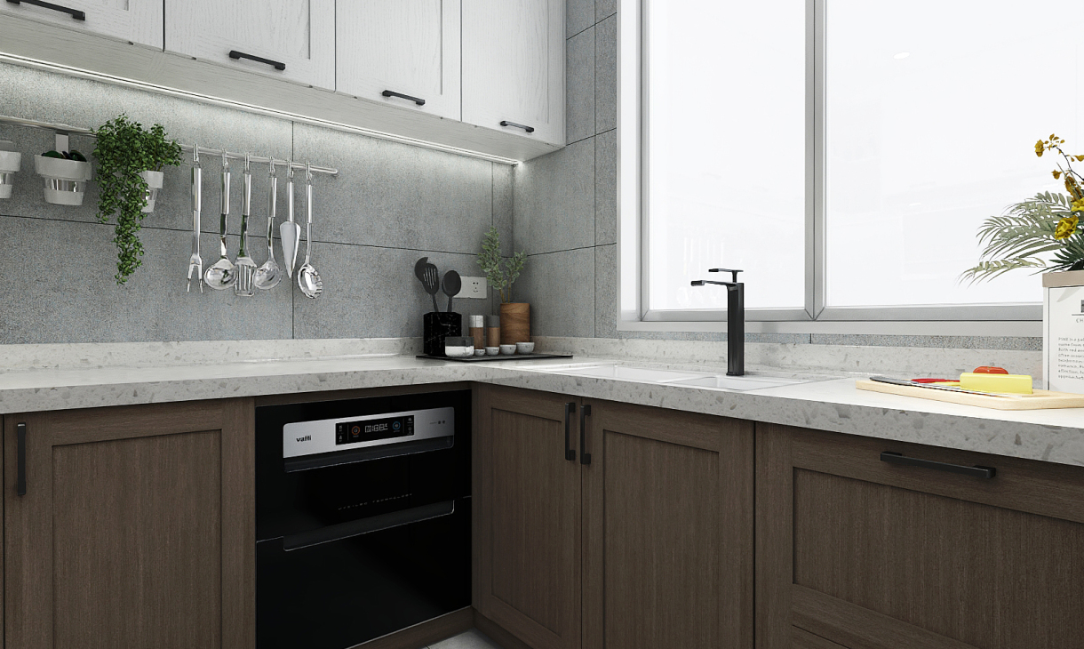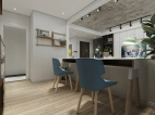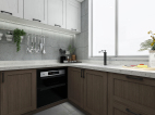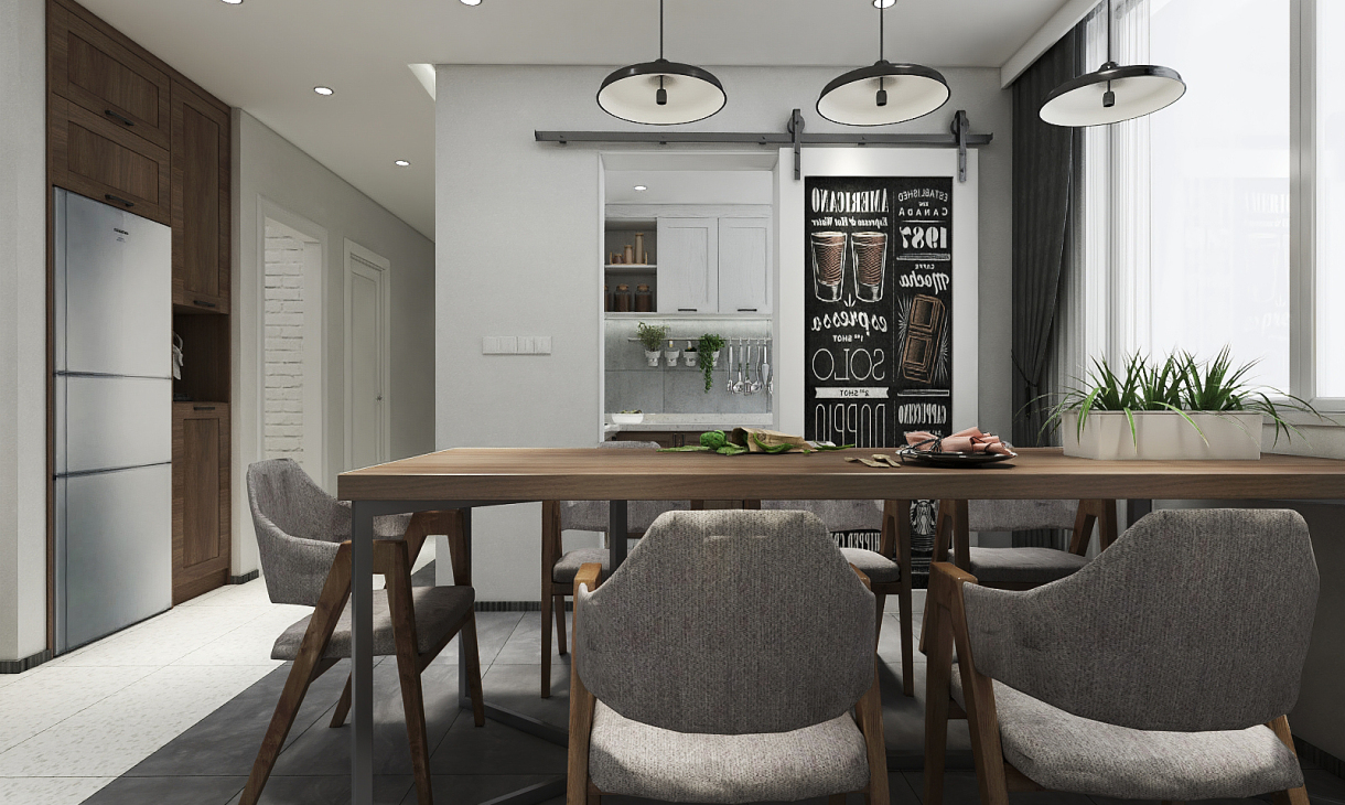 灰白色的基調,讓空間更具通透感與延伸性。過道柜子里的嵌入式冰箱,為廚房騰出更多的空間。