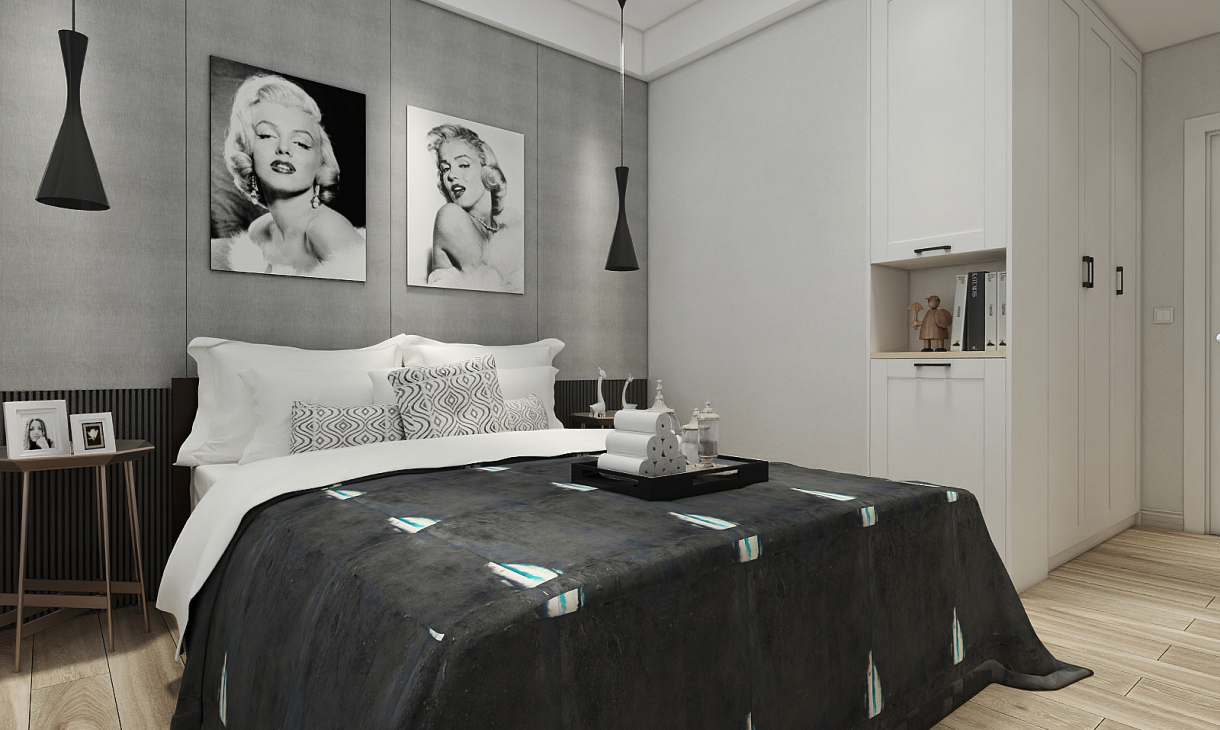 清爽的灰白是臥室首選色彩。灰白兩色的搭配,是愜意的自由與純粹。