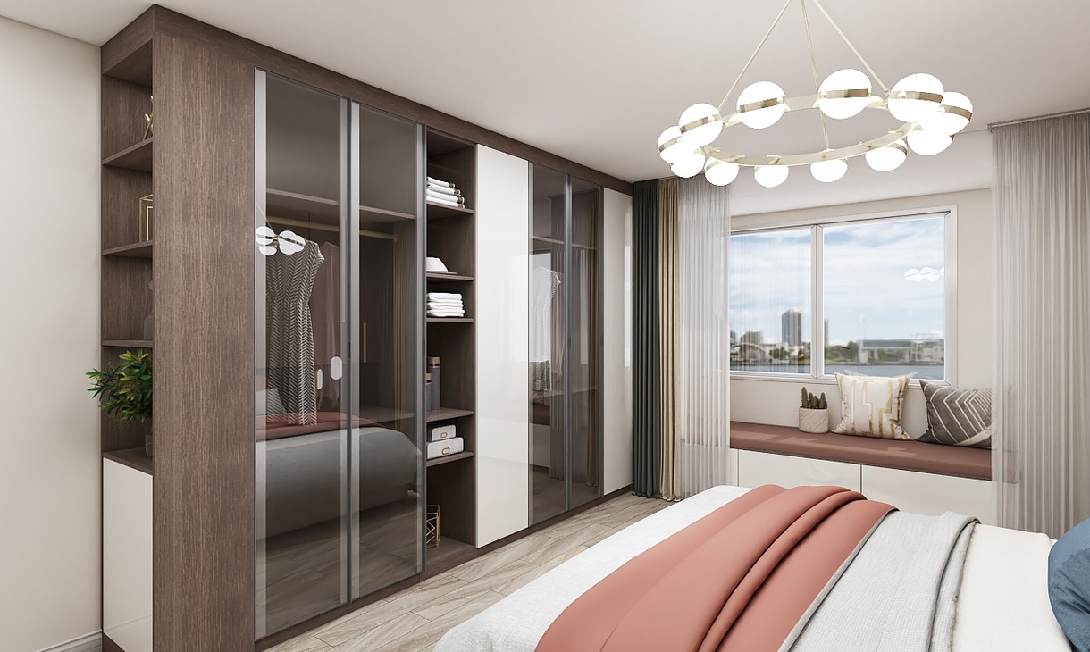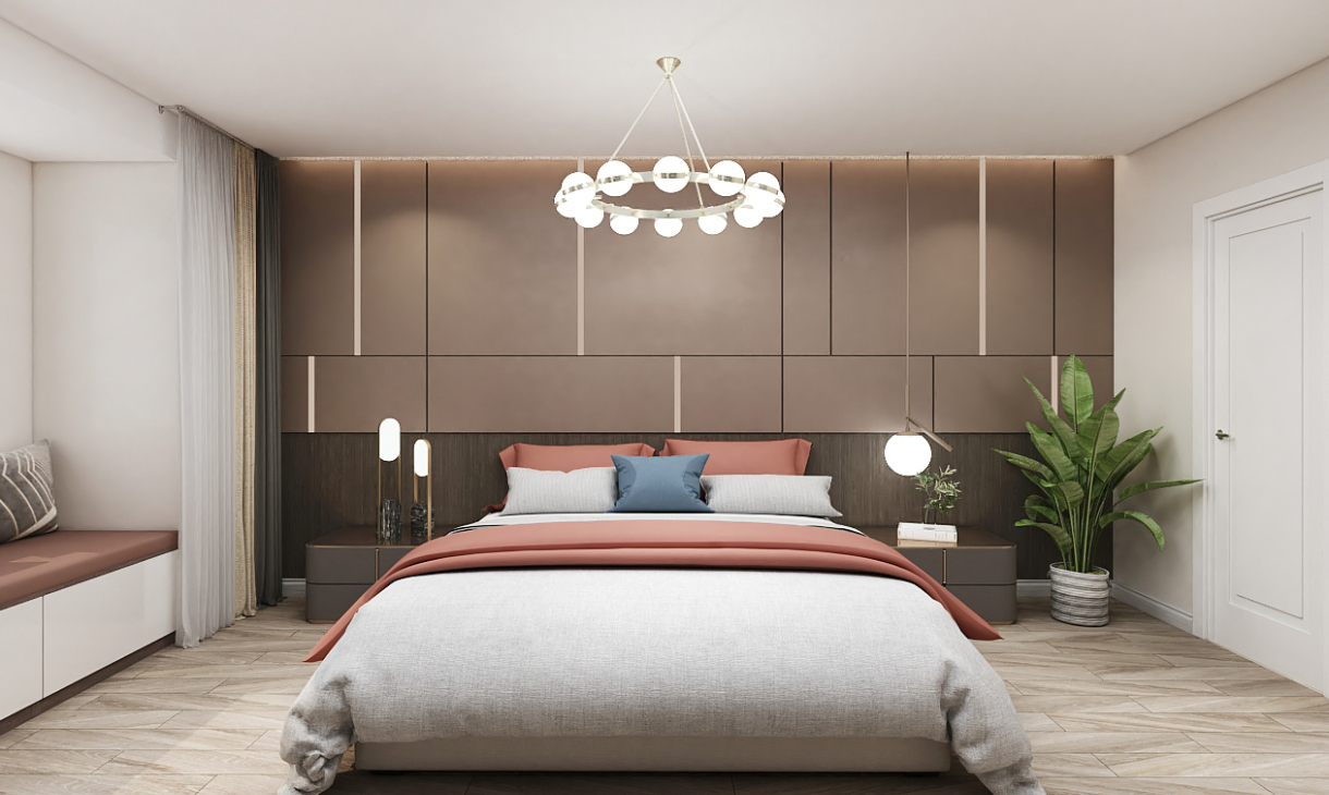 主臥溫馨舒適,色調統一,衣柜具有大空間儲藏量,方便又實用。