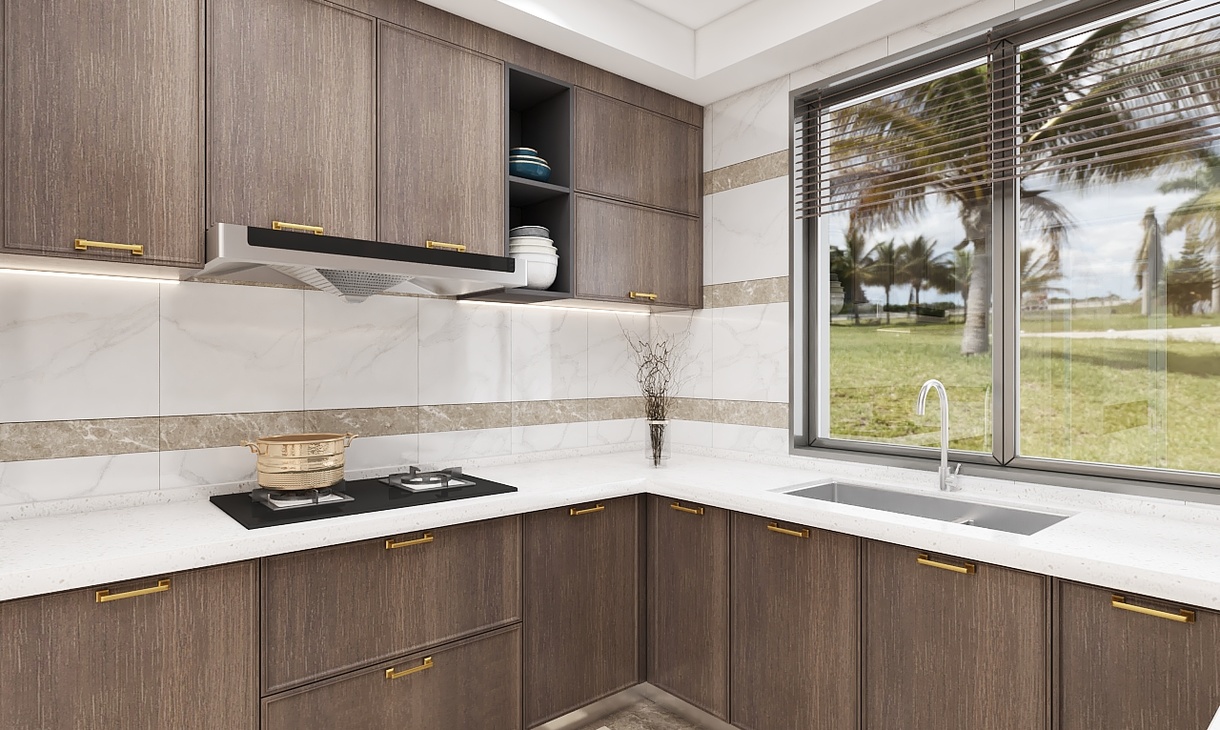廚房暮色搭配大理石,和諧美觀,功能齊全。