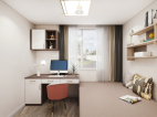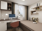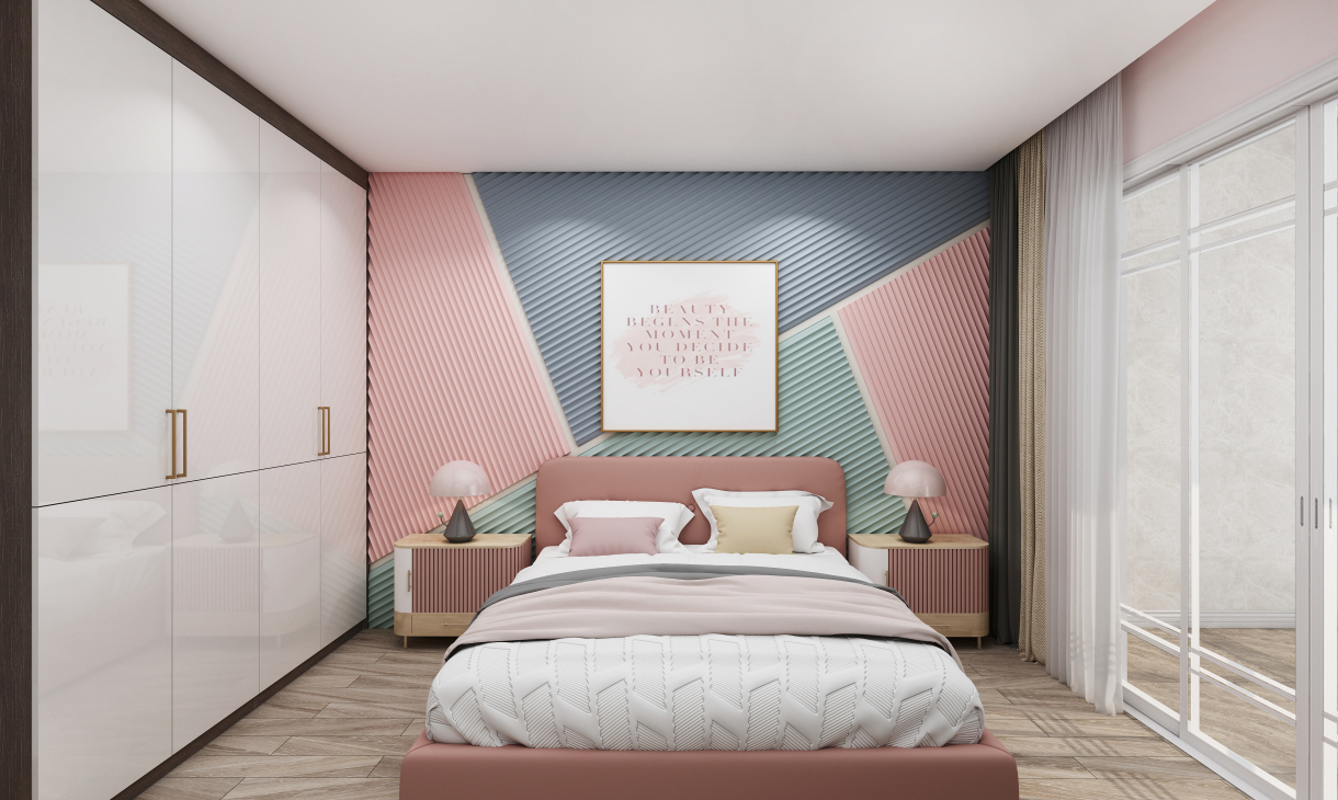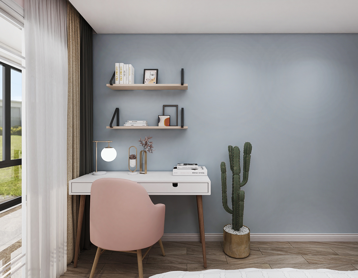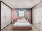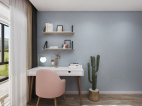 兒童房靚麗活潑,粉紅和粉藍色調搭配,寫字桌可供獨立學習使用。適合青少年居住。