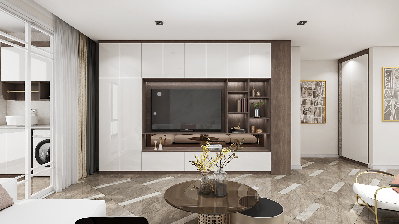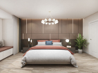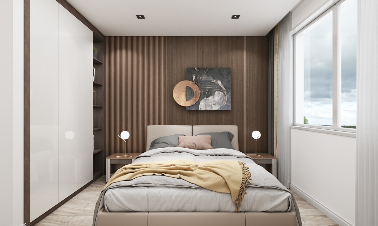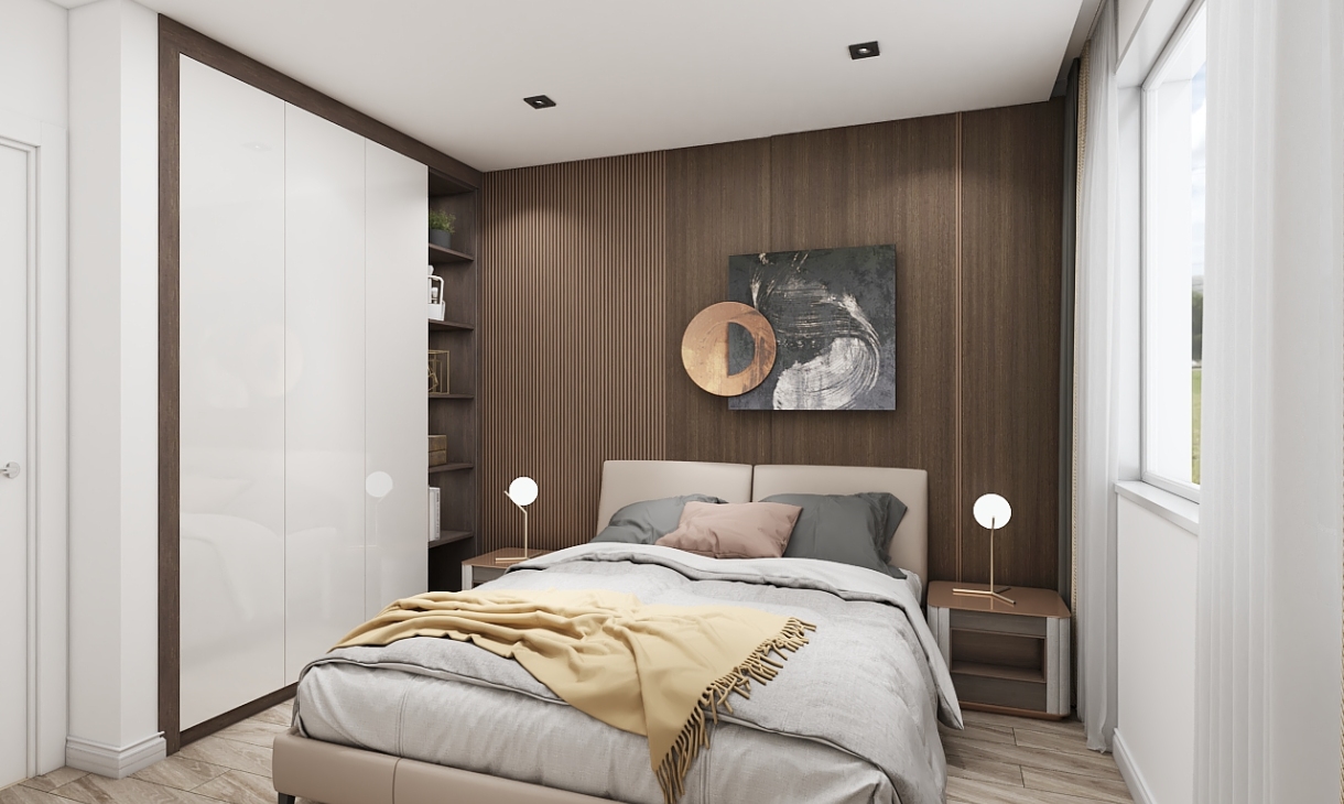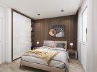 客臥木色搭配白色衣柜,實用美觀,色調溫和自然,舒適宜居。