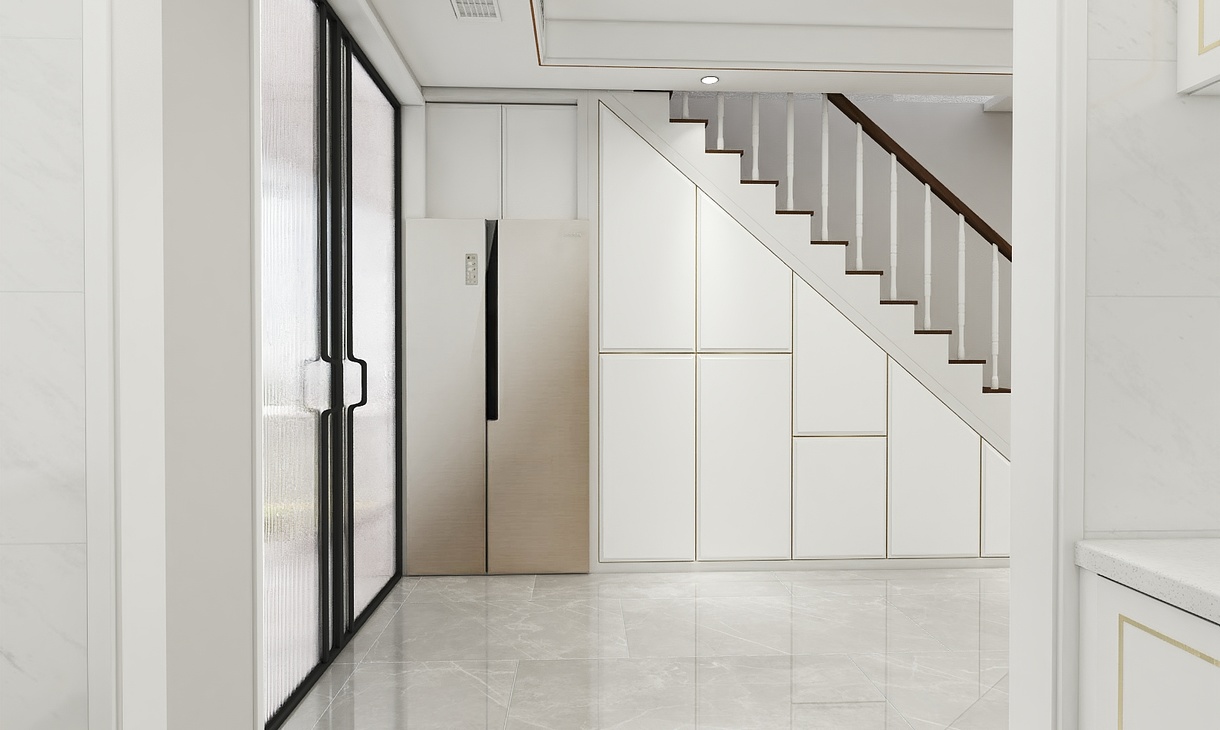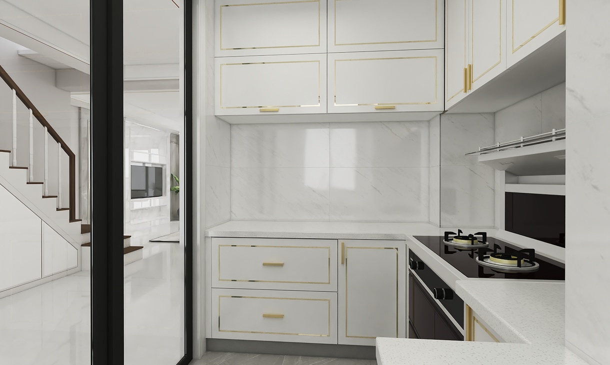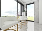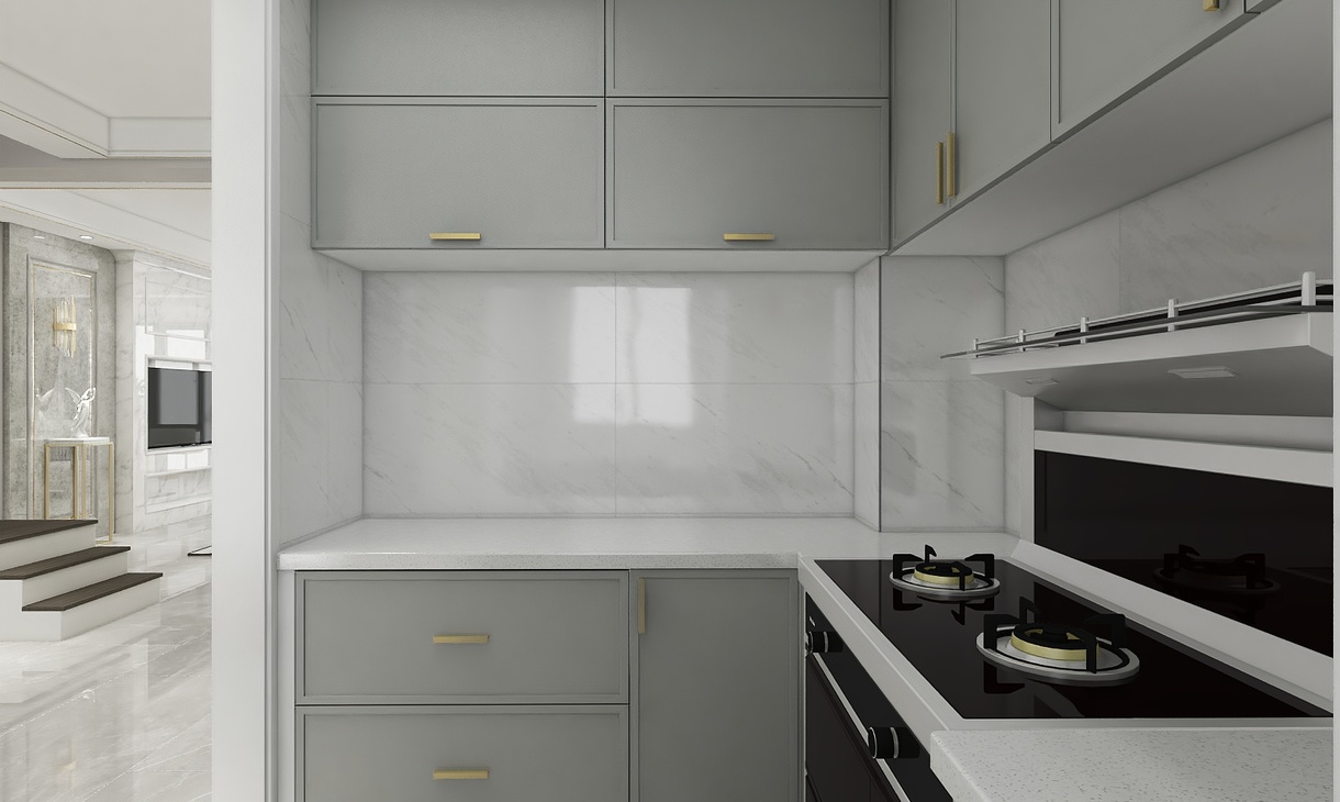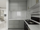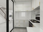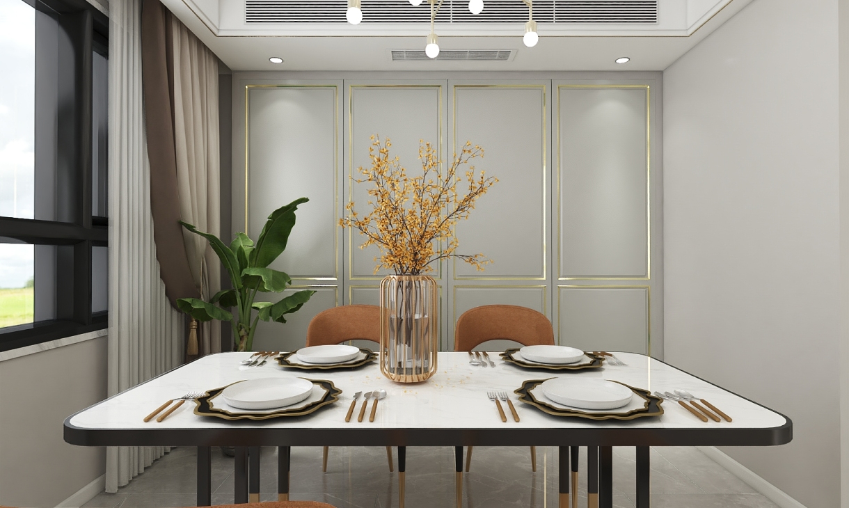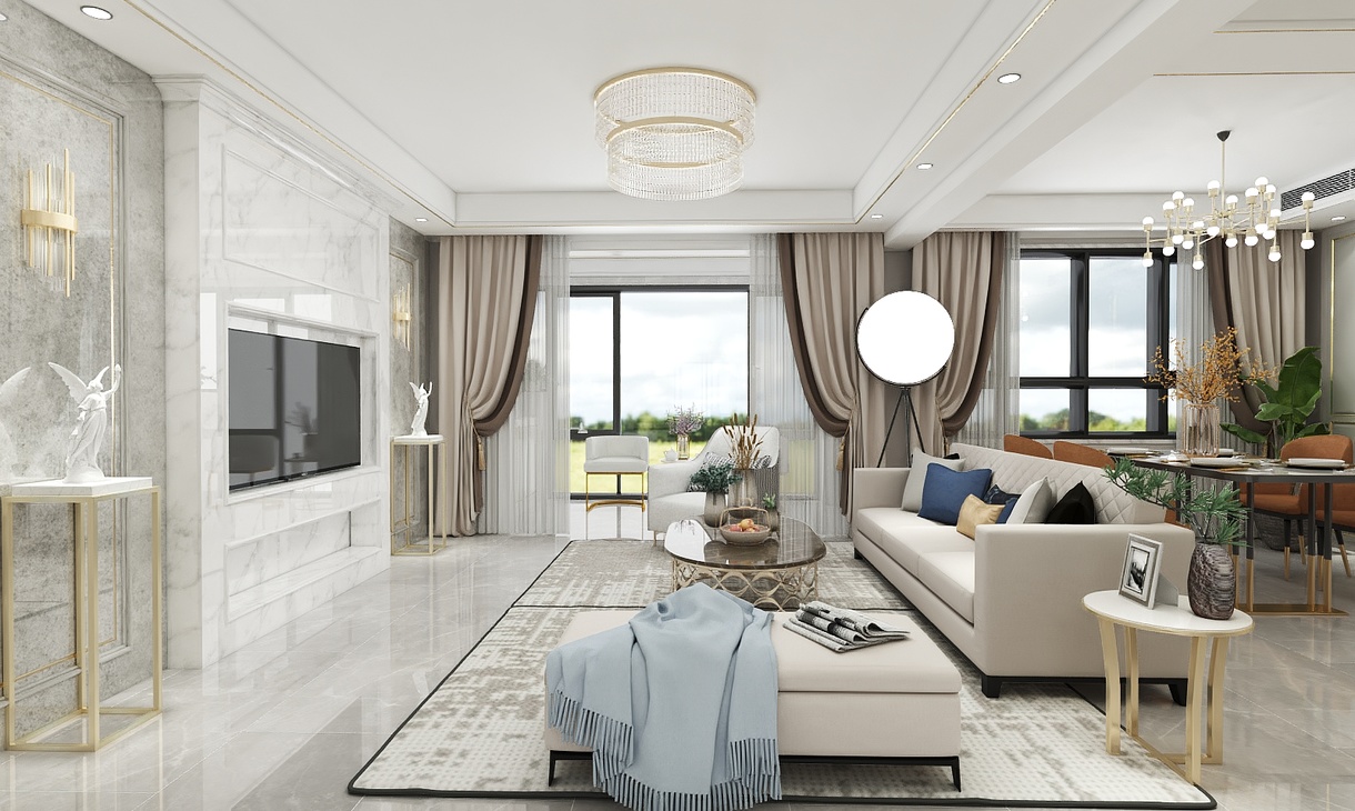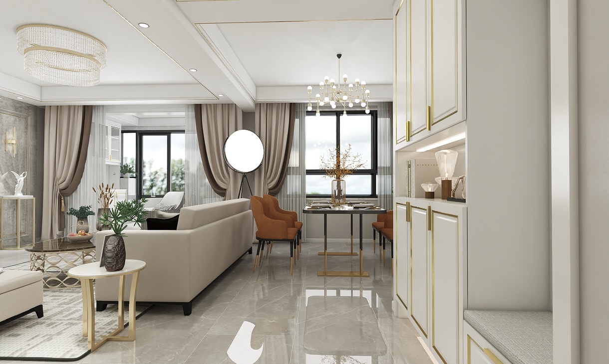 客廳線條優(yōu)雅的水晶燈,以輕盈的姿態(tài)預(yù)告了夜晚的浪漫情調(diào)。整體空間以暖調(diào)白為主,在軟飾上選取愛(ài)馬仕橙跳色,清新明快,金色賦予空間優(yōu)雅輕奢的質(zhì)感。家私上以皮革、布藝、絨面為主,溫暖舒適。家具選用大理石、木來(lái)凸顯質(zhì)感。