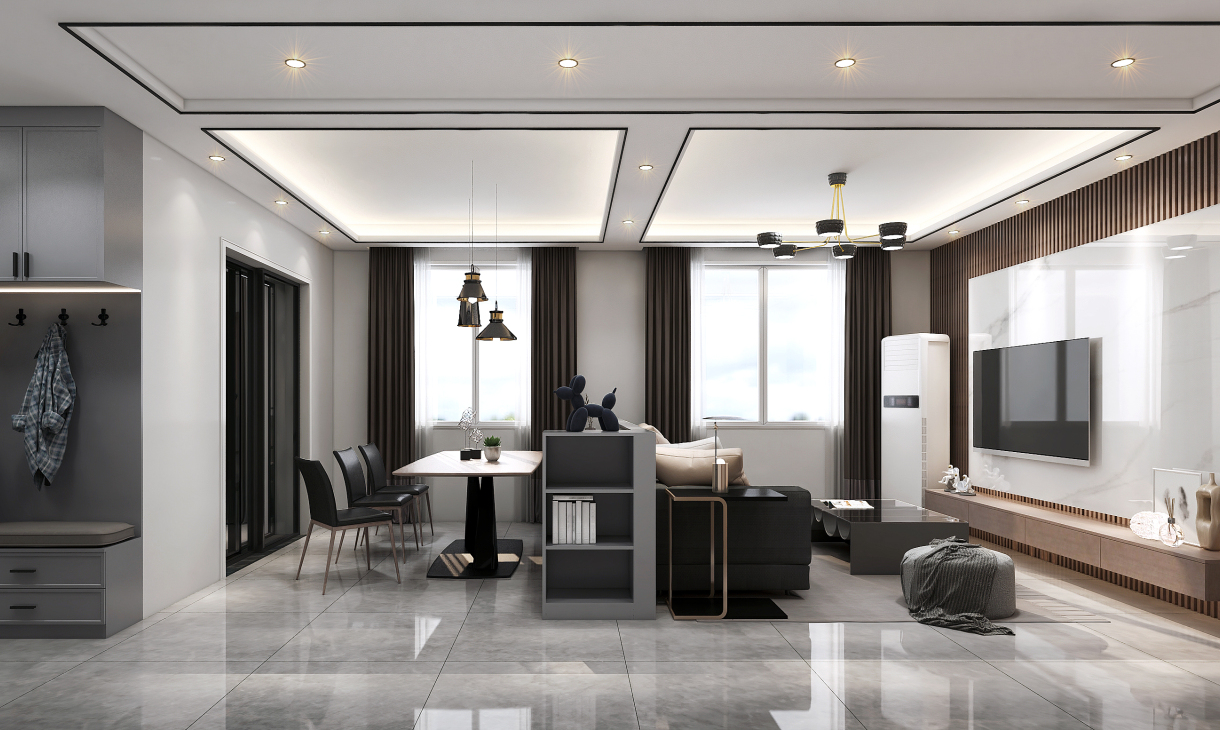 每個空間至少2張效果圖+1張全案全景圖展示,方案描述完整,所有空間需命名。