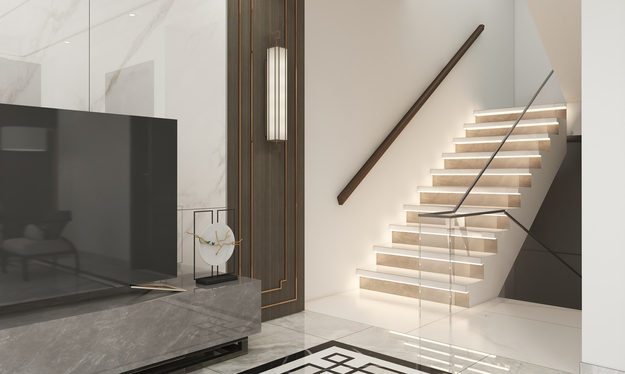 發光樓梯踩步搭配巖板讓整個樓梯瞬間提升一個檔次