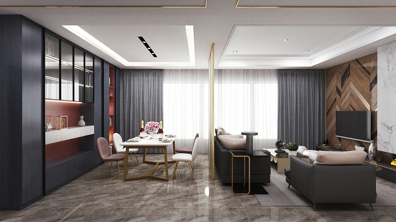 每個空間至少2張效果圖+1張全案全景圖展示,方案描述完整,所有空間需命名。