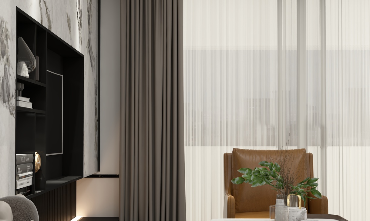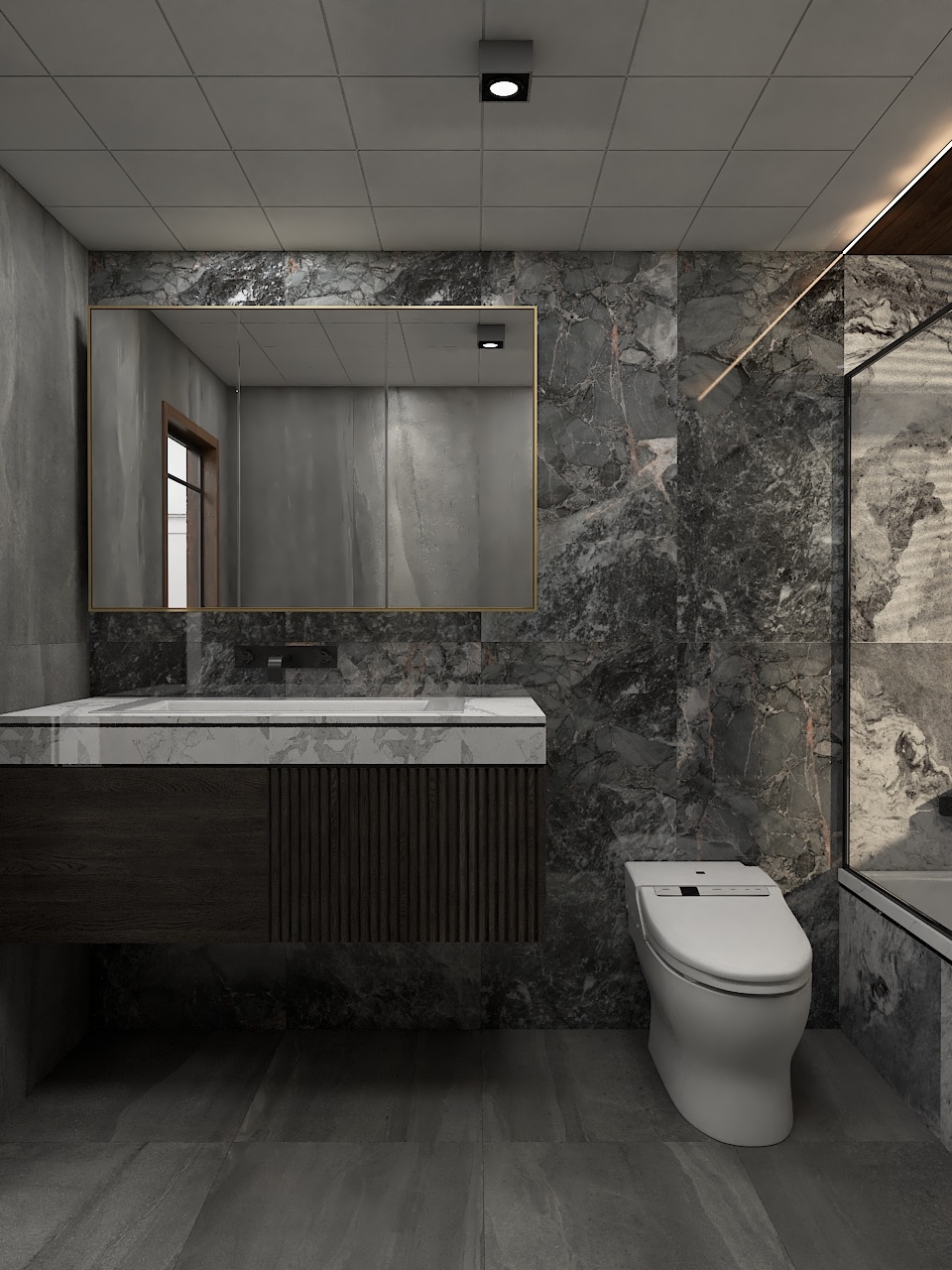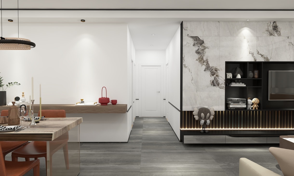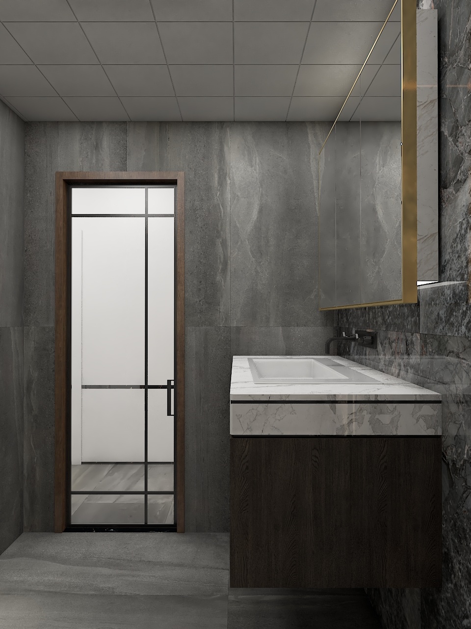在本案中,室內(nèi)空間的表達(dá)依托于傳統(tǒng)但又脫離刻板的固定縟節(jié)讓自然與現(xiàn)代設(shè)計不斷交織、平衡表達(dá)出多元型格的理念以低飽和度的綠色引領(lǐng)目光跟隨以石材與木飾面詮釋生命活力的解析讓設(shè)計理念以最直觀最鮮明的視覺觀感呈現(xiàn)