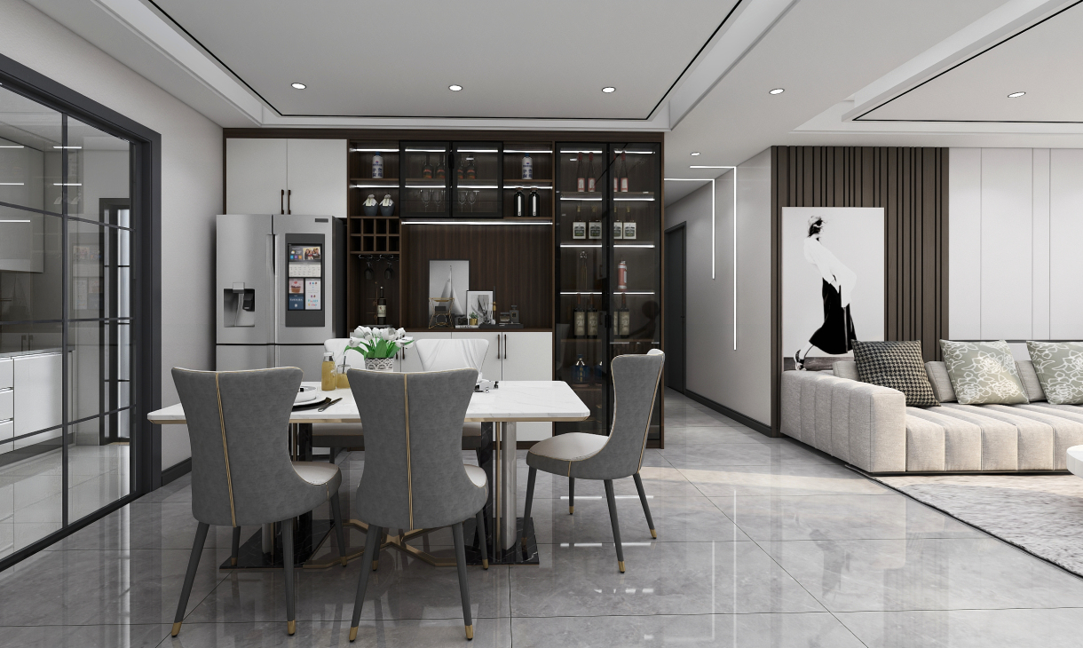 每個空間至少2張效果圖+1張全案全景圖展示,方案描述完整,所有空間需命名。
