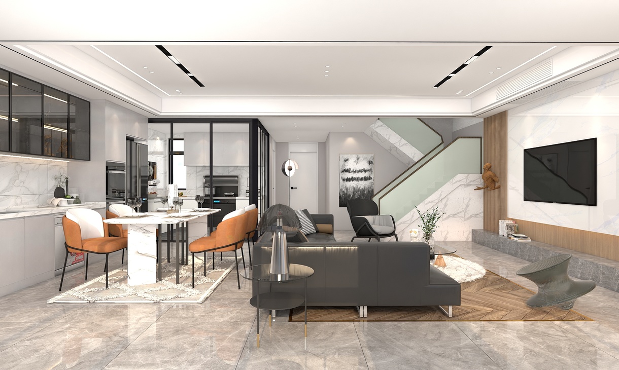 每個空間至少2張效果圖+1張全案全景圖展示,方案描述完整,所有空間需命名。