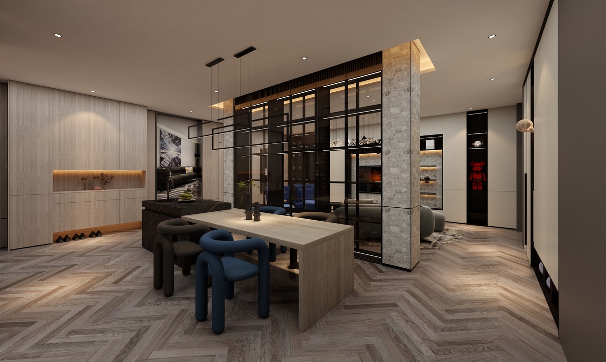每個空間至少2張效果圖+1張全案全景圖展示,方案描述完整,所有空間需命名。