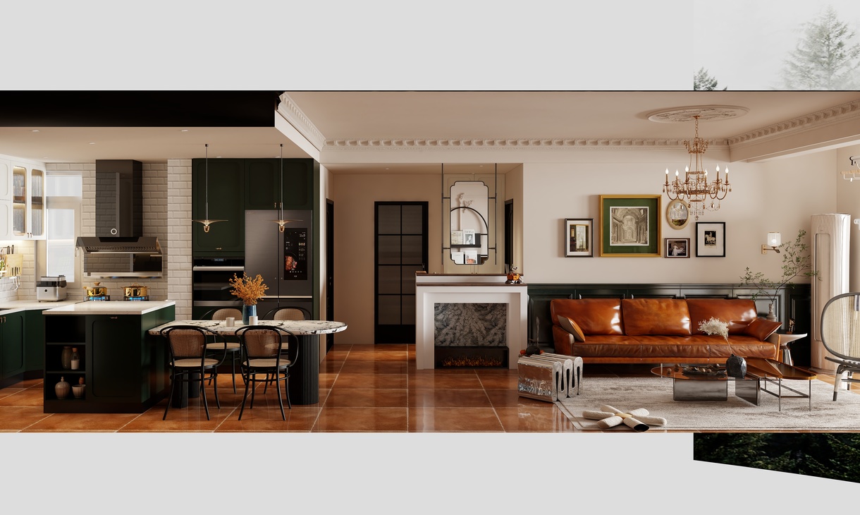 每個(gè)空間至少2張效果圖+1張全案全景圖展示,方案描述完整,所有空間需命名。