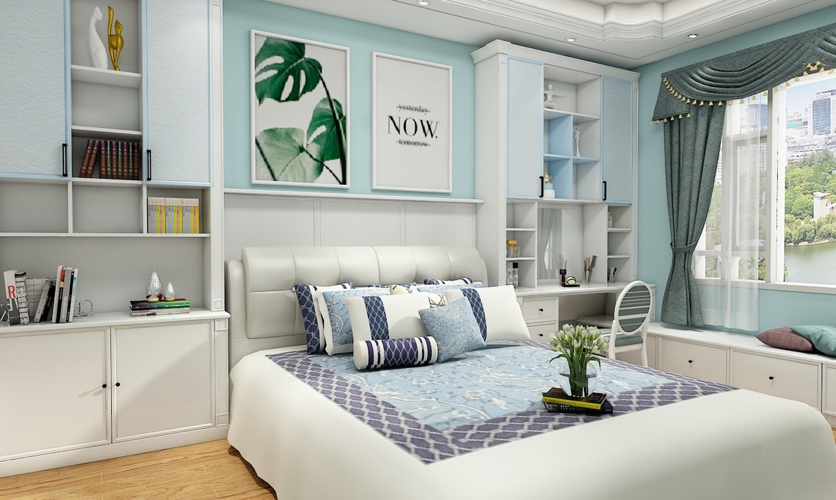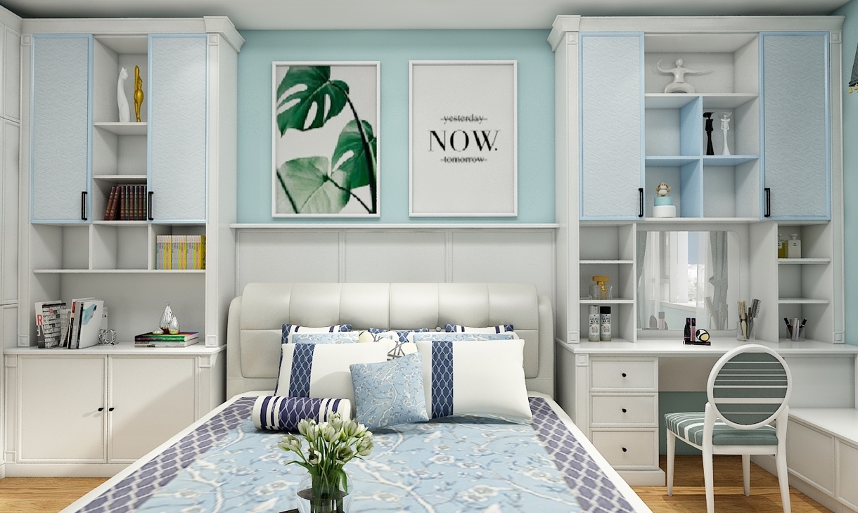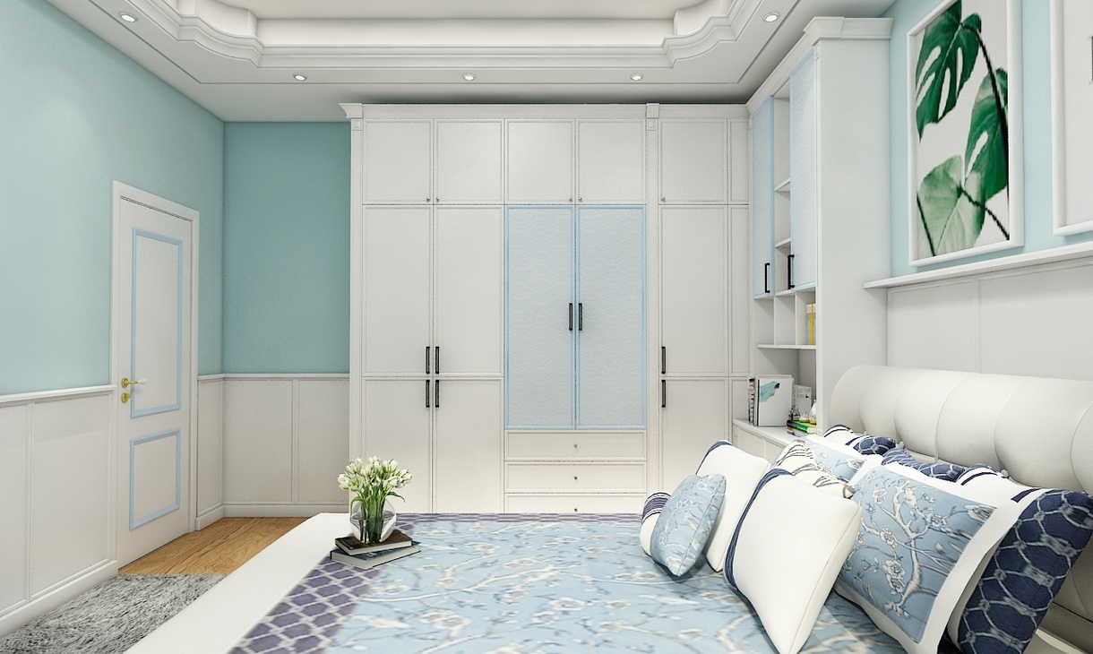 阿爾卑斯山脈是歐洲最高的山脈,那里清澈靜謐,純潔無瑕...... 空間的設計思路上,是要營造一種憧憬:氛圍如阿爾卑斯山的靜謐與純潔,猶如置身于阿爾卑斯山中品酒、聽音樂、看書,在如阿爾卑斯山的靜謐中緩緩進入夢鄉,讓匆匆忙忙的你,告別世間的紛擾,回歸生活的本質......實現高品質的簡歐生活,引導的是一種當今非常流行的生活方式,即“輕奢華、新時尚”。全屋柜體以白色為主,藍色與其撞色,搭配灰藍背景,清新而雅致;局部以帶凹凸紋理的整體吸塑工藝,仿亞光油漆效果來滿足視覺協調,加入浮雕花紋吸塑門板,使得更具美感。。。。。