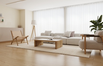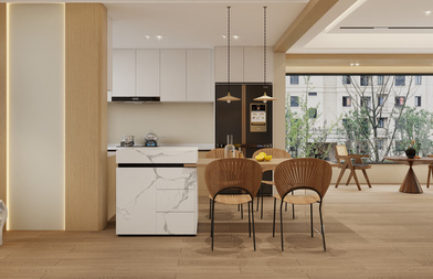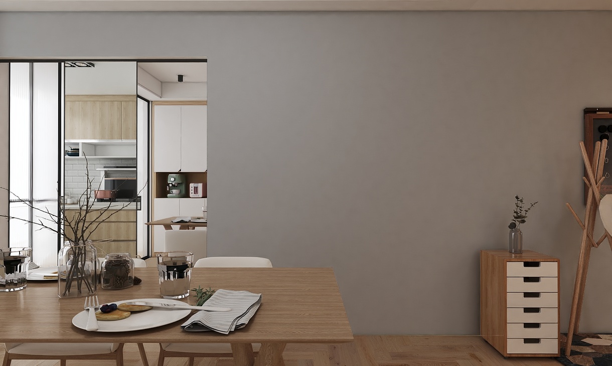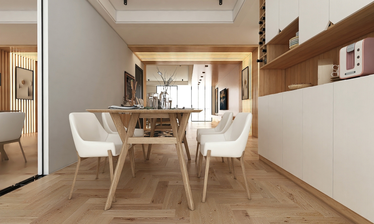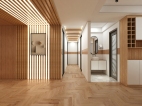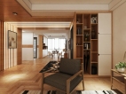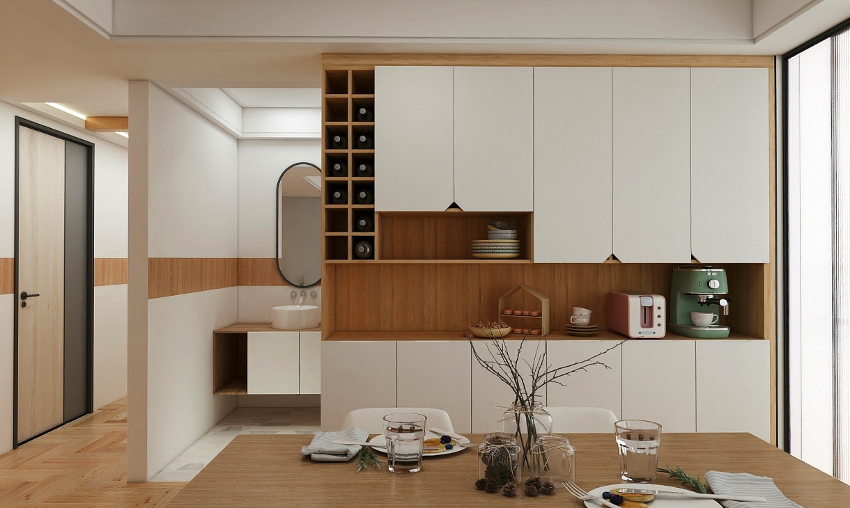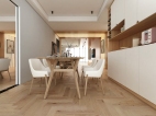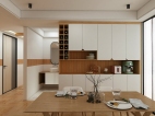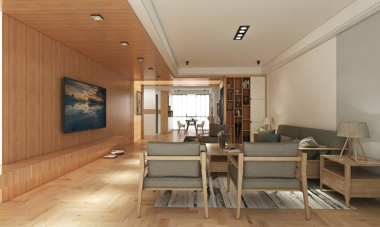 貫穿式入戶燈帶分割客餐廳。原木色基調體現簡單,舒適的居家感覺