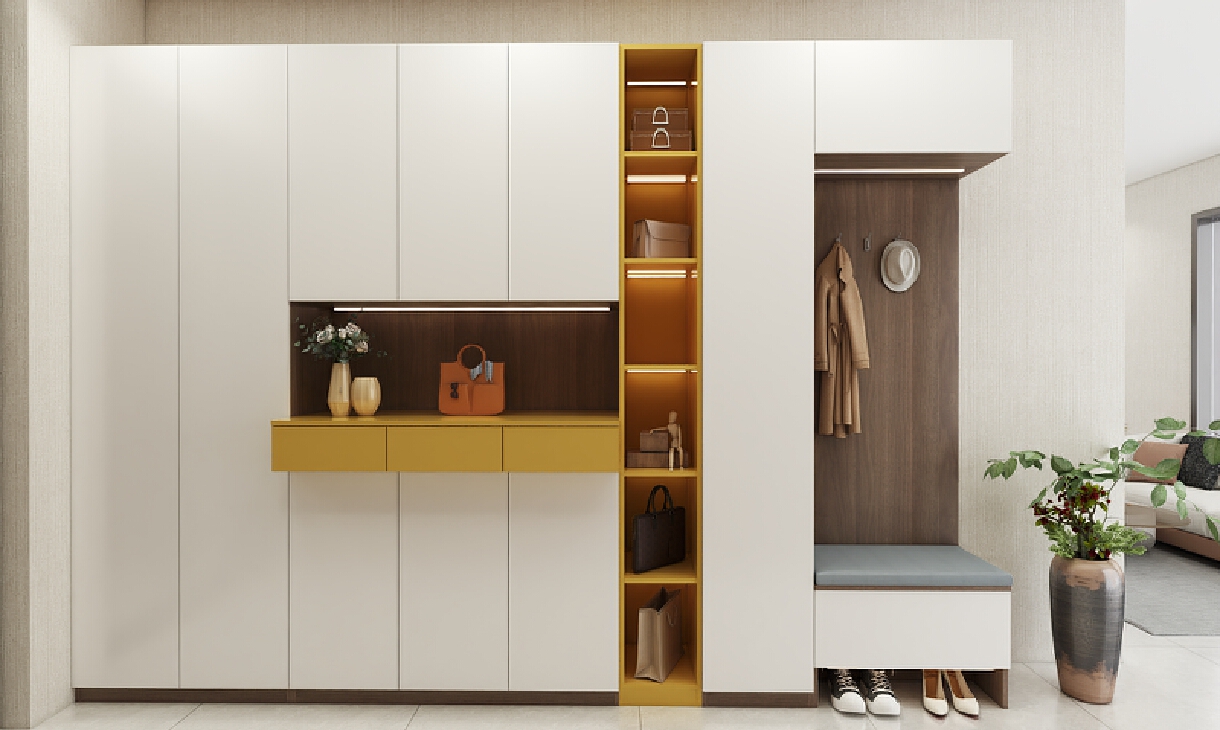 極簡風格,入戶空間,衣帽間空間,客餐廳空間,柵格墻板,當下流行元素