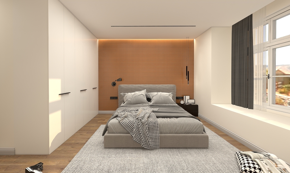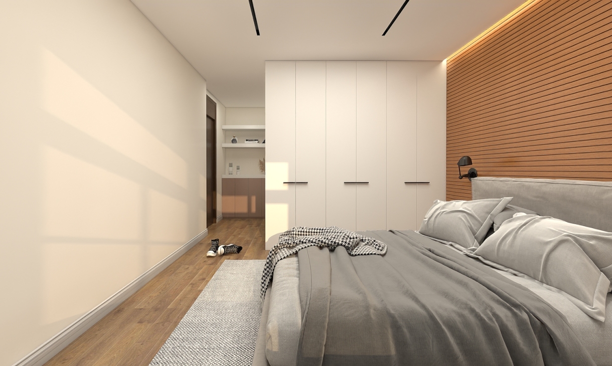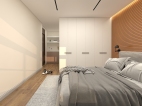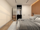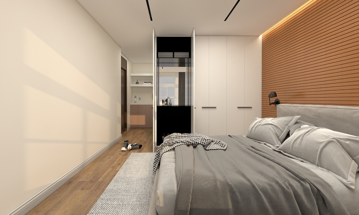 主臥空間注重收納的協調,色調的延續和運用,每一件單品的比例都恰到好處,演繹了不一樣的現代都市生活。現代生活節奏快,壓力大,衣柜已經不能滿足基本生活功能,回家也要有一個步入式衣柜。