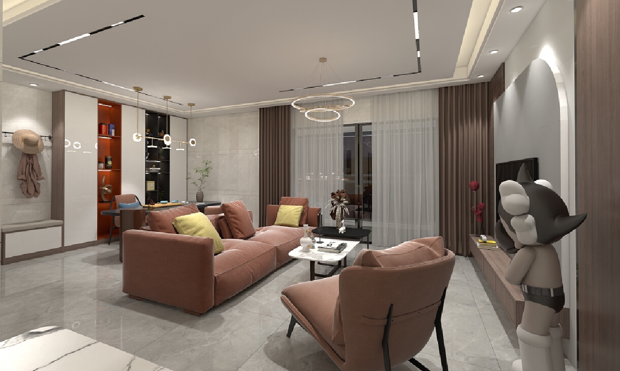 每個空間至少2張效果圖+1張全案全景圖展示,方案描述完整,所有空間需命名。