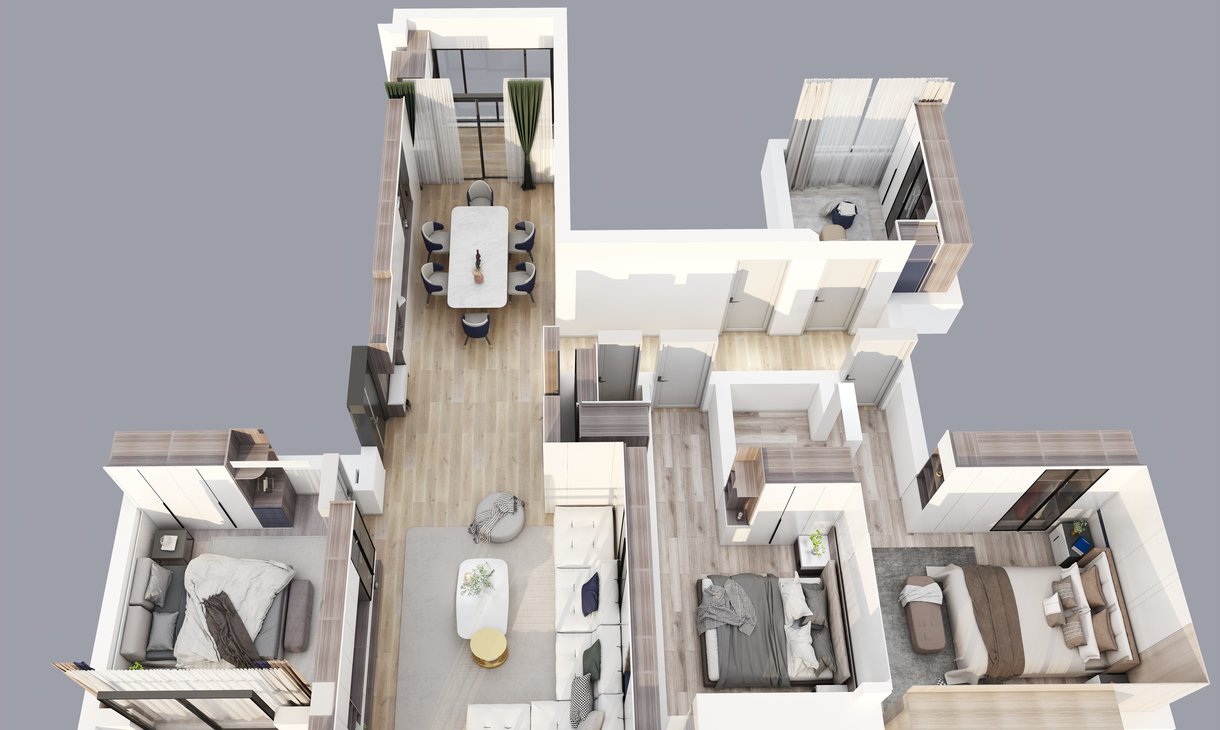 每個空間至少2張效果圖+1張全案全景圖展示,方案描述完整,所有空間需命名。