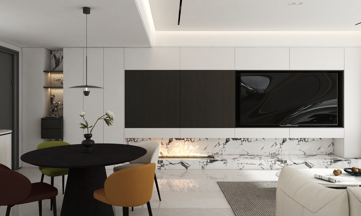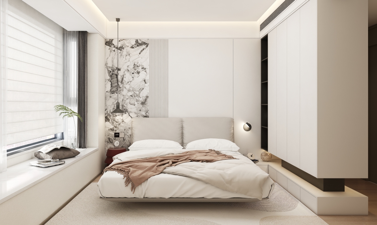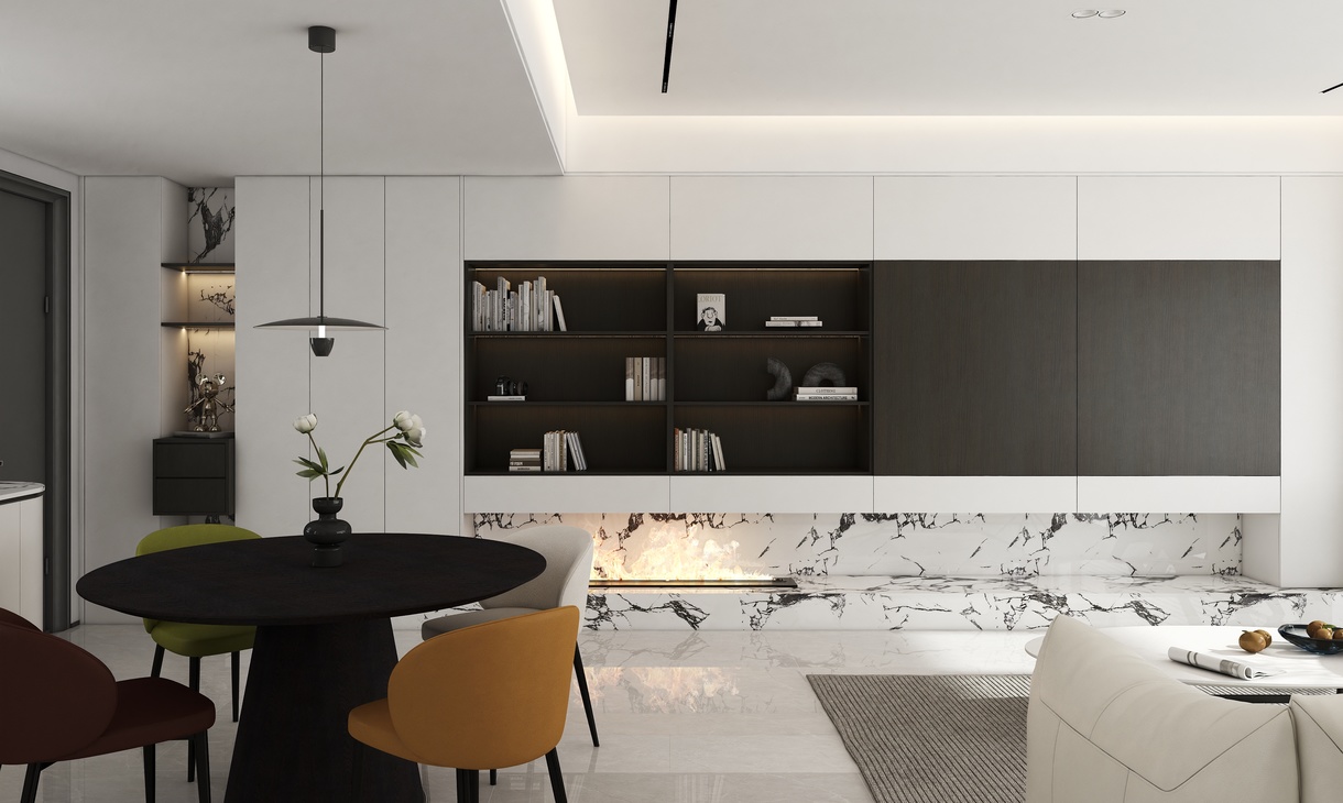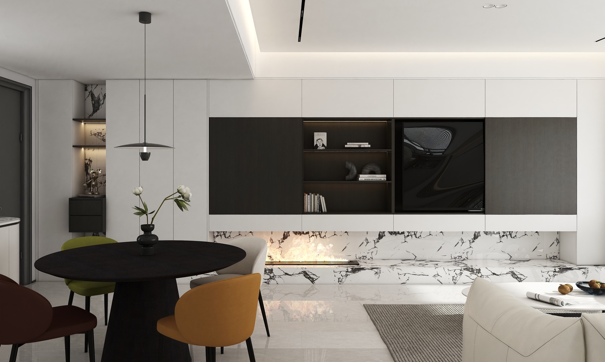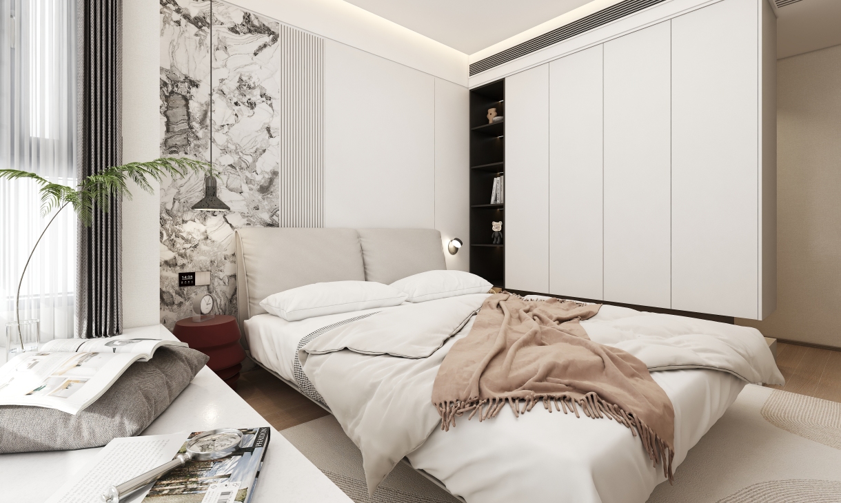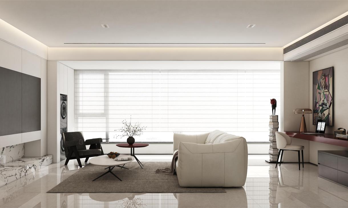 在極具秩序感的現(xiàn)代極簡風(fēng)格中增加一些舒適愜意的松弛感,井然有序,張弛有度