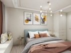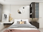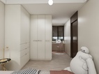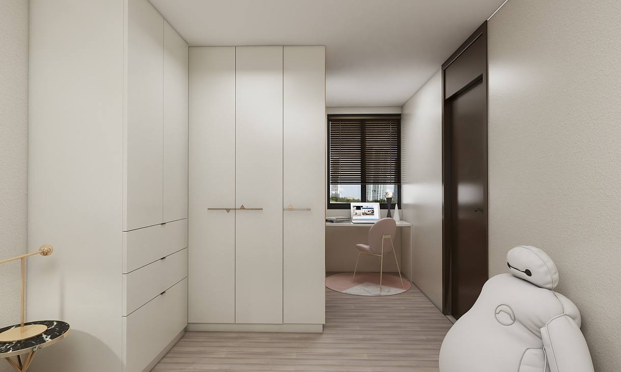 小女孩比較小,所以整體白色為主一些軟裝用粉色作為跳色,簡約之中加入了一些童趣