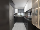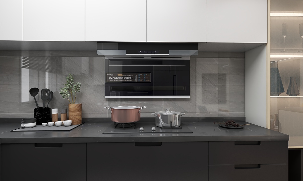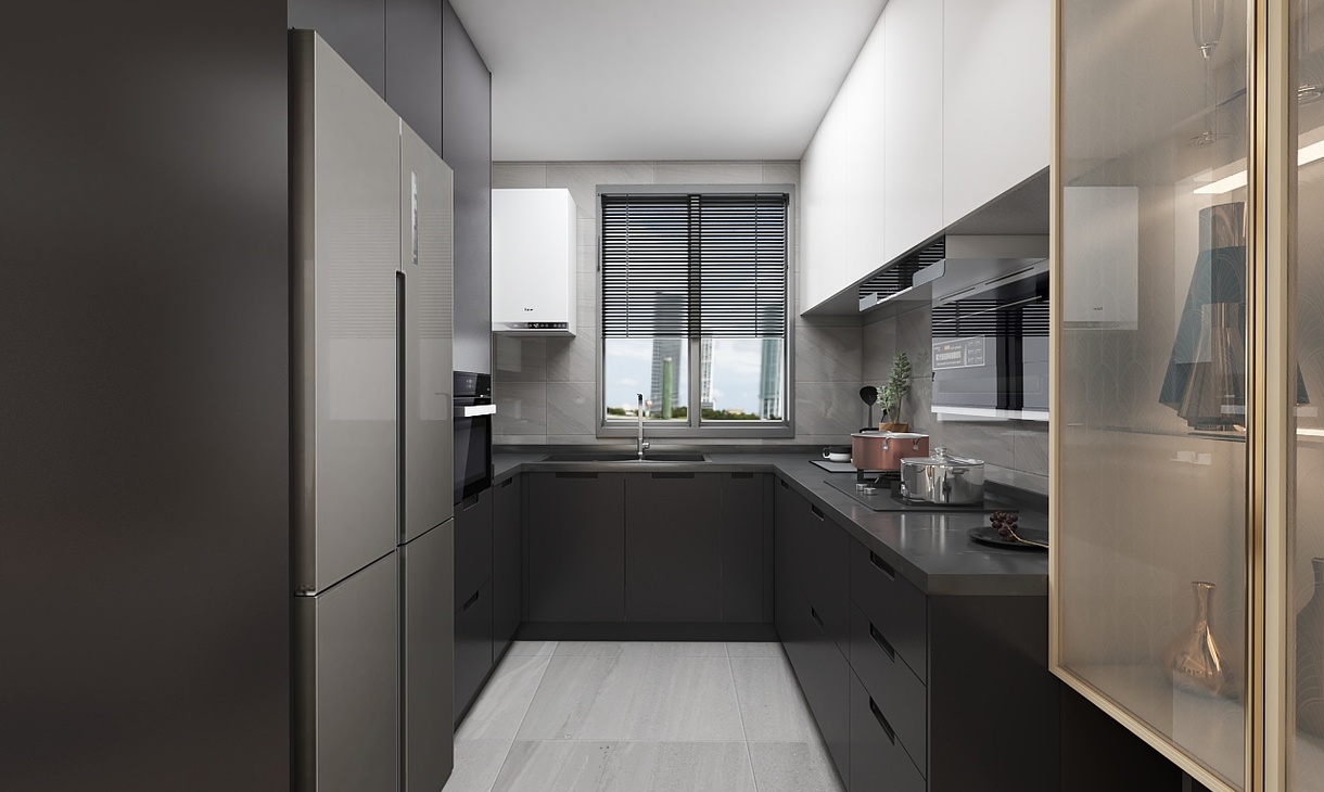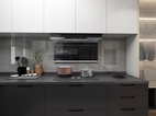 整體顏色是灰色系為主,紅色作為跳色點亮整個空間