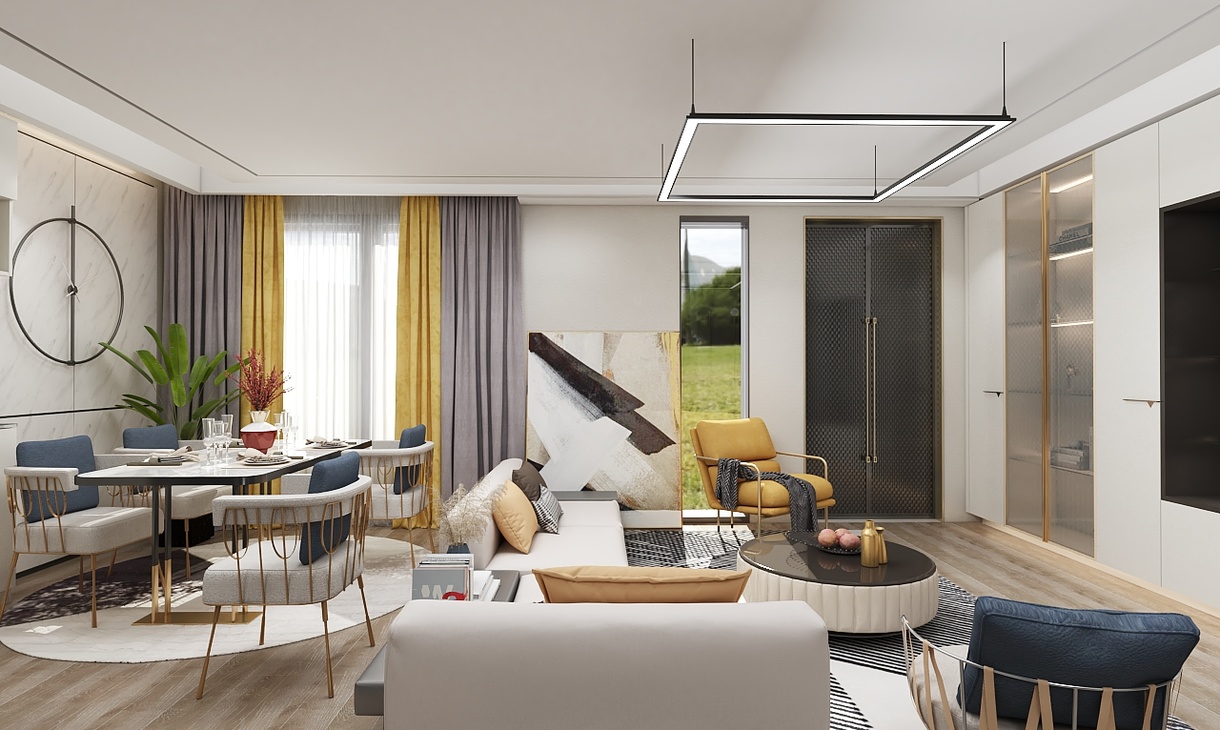 每個空間至少2張效果圖+1張全案全景圖展示,方案描述完整,所有空間需命名。