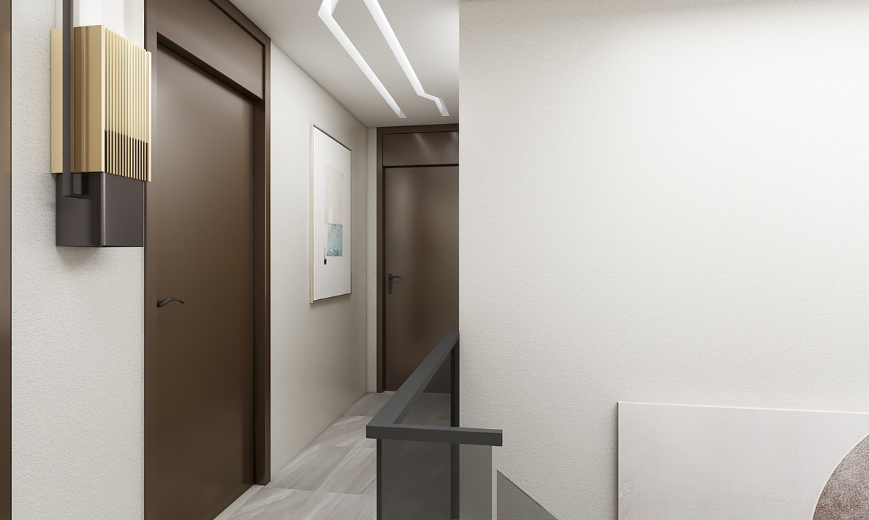 整個空間以溫馨的白色為主,深咖色作為點綴