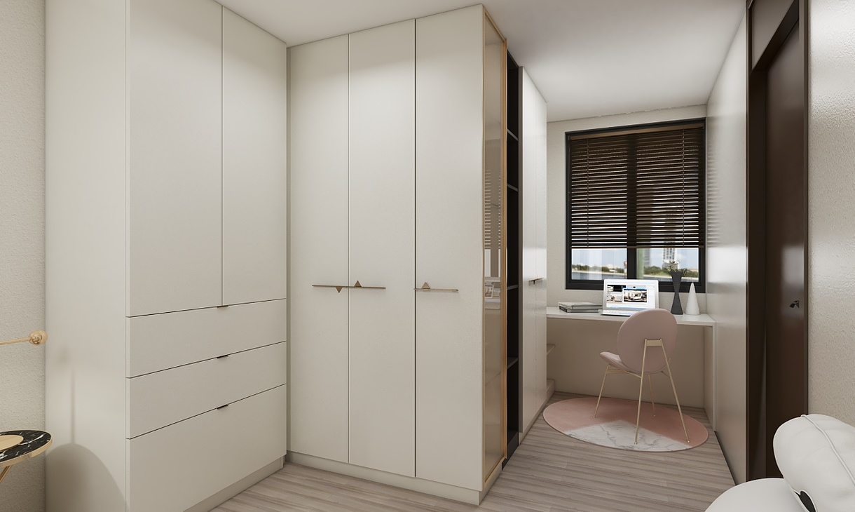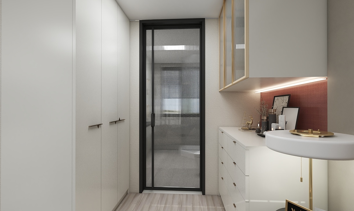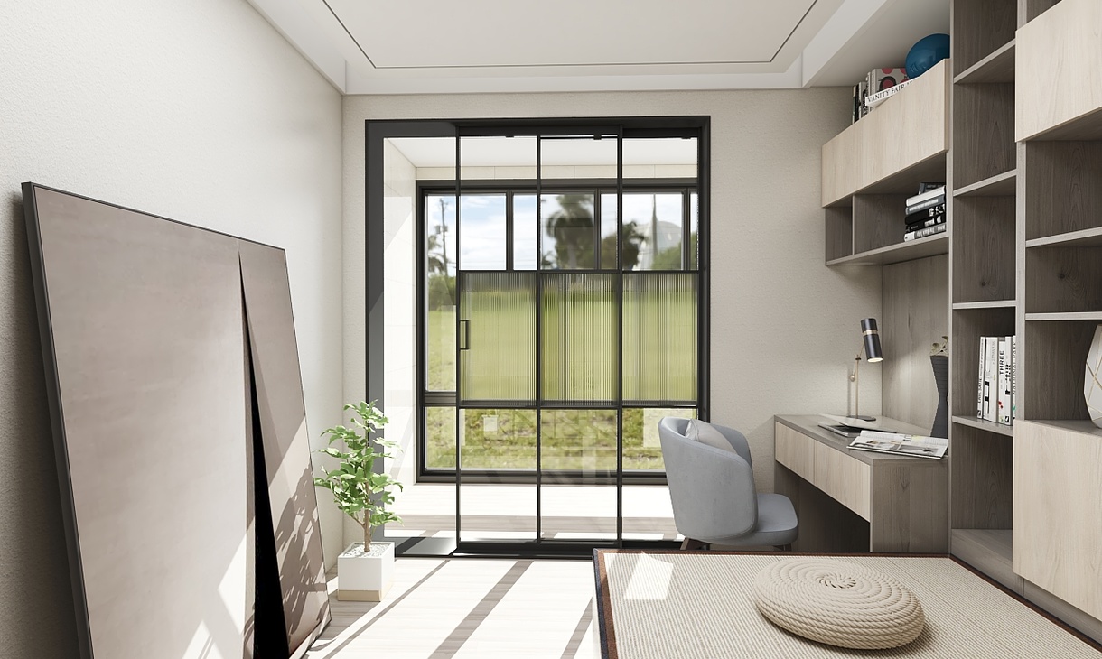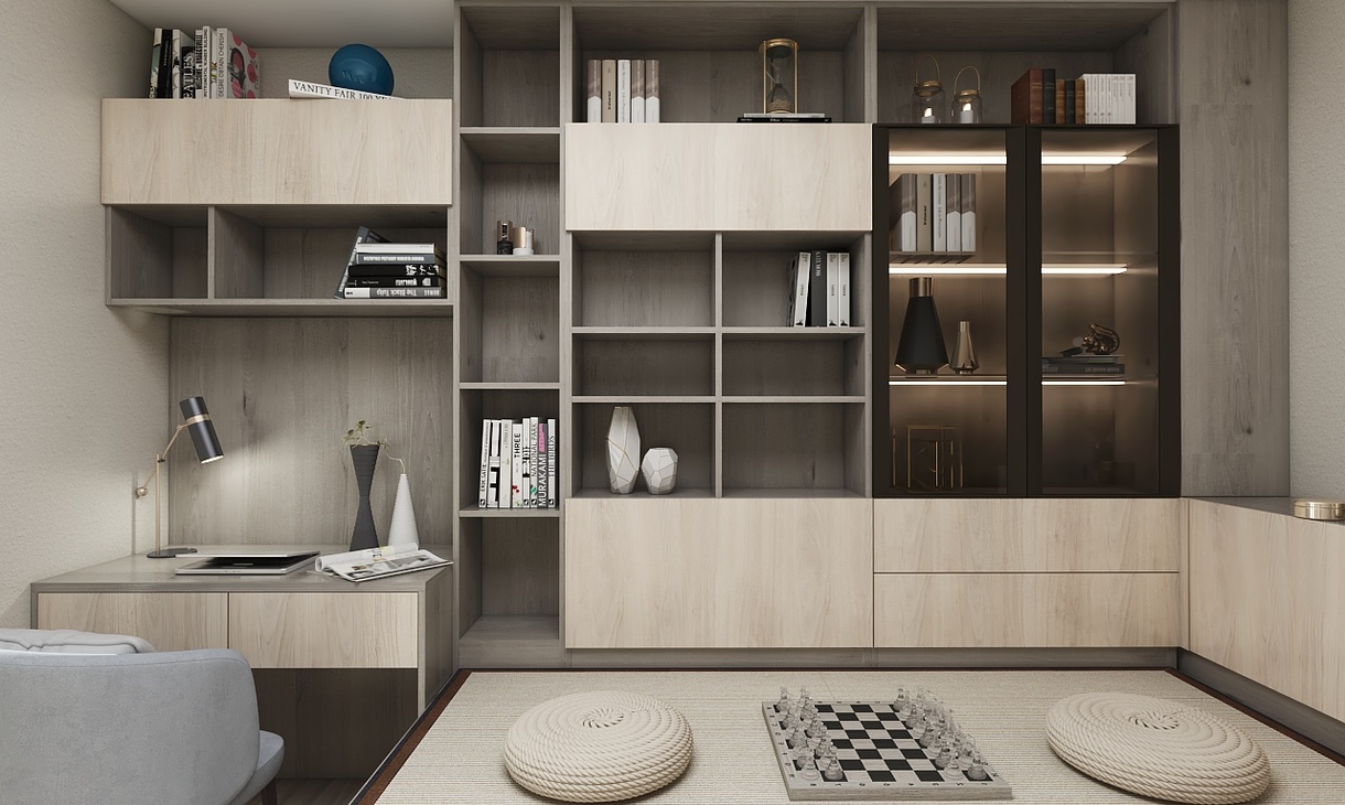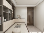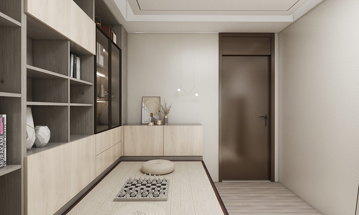 整個空間以活動書房為主,柜子虛實結合,使整個空間更加靈動