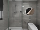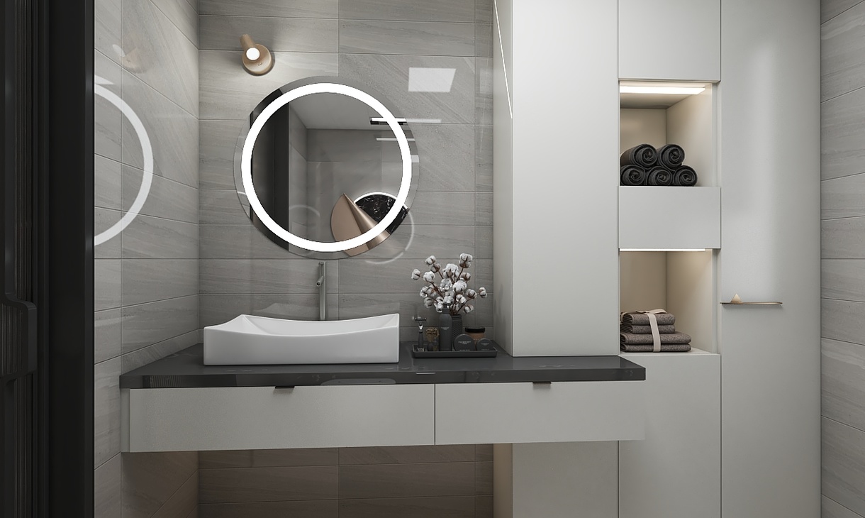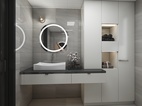 充分利用空間,是洗漱和儲物相結合,臺面采用疊加處理是整個柜子更加有立體感
