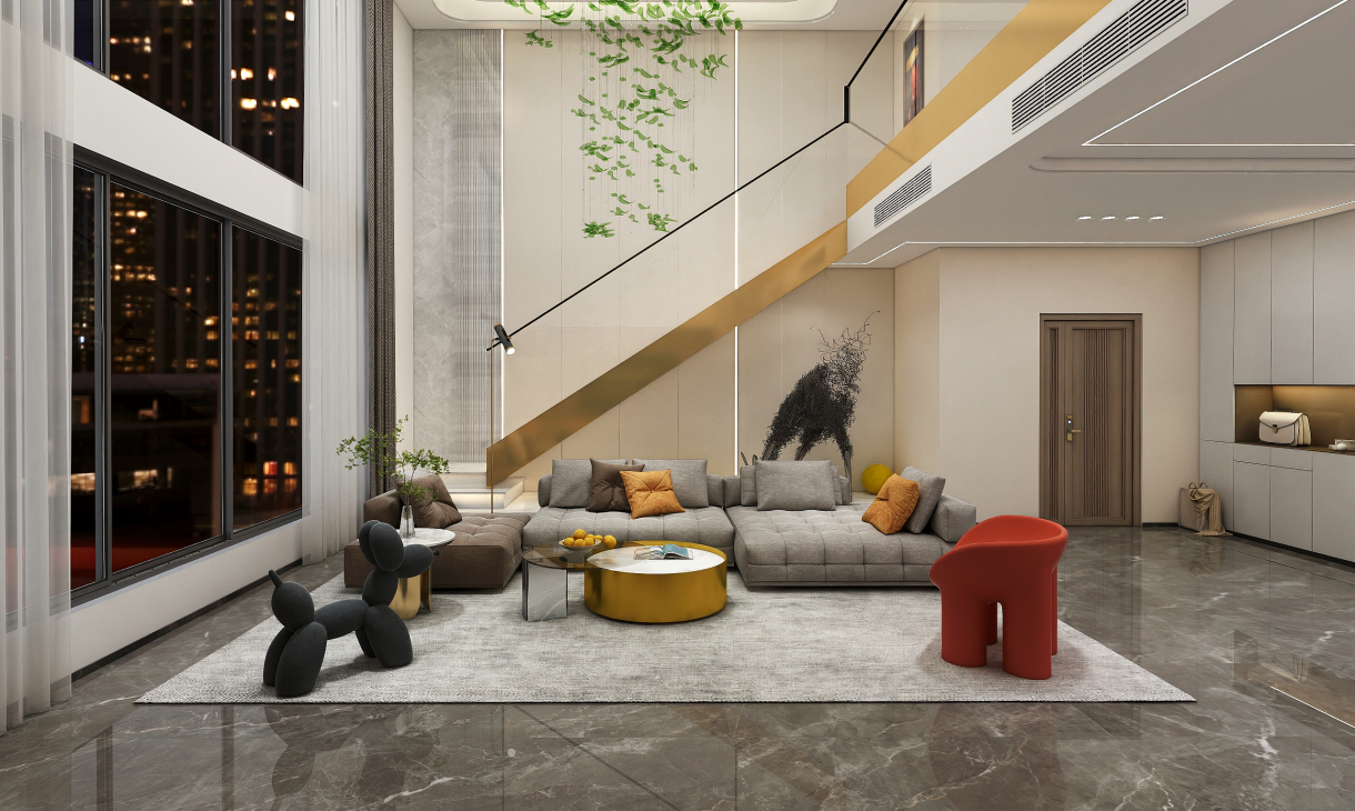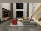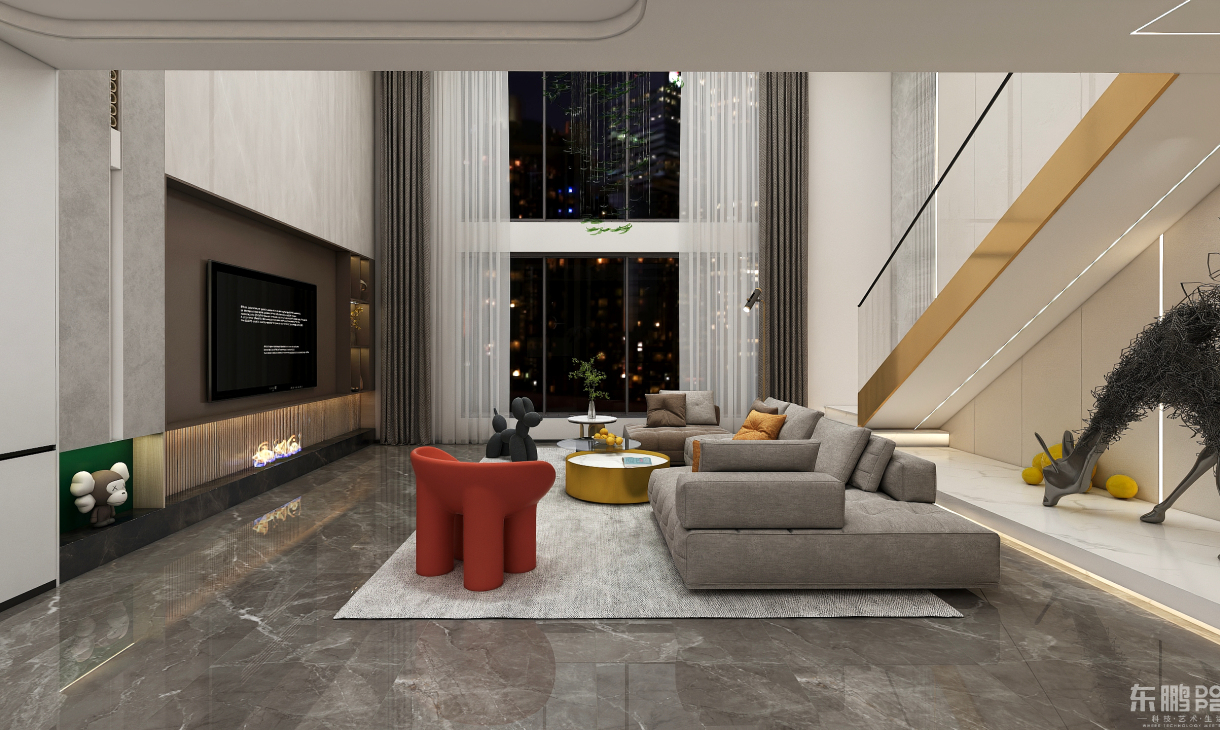 挑高是這個(gè)家的空間樞紐和精神內(nèi)核,極具透光性和視覺張力,象征著一種開闊而自由的生活態(tài)度。陳設(shè)上以不同色度的灰作為主色調(diào),布藝、皮質(zhì)、羊毛等不同肌理形成不同的觸感。