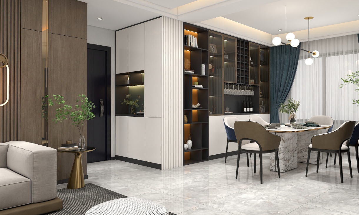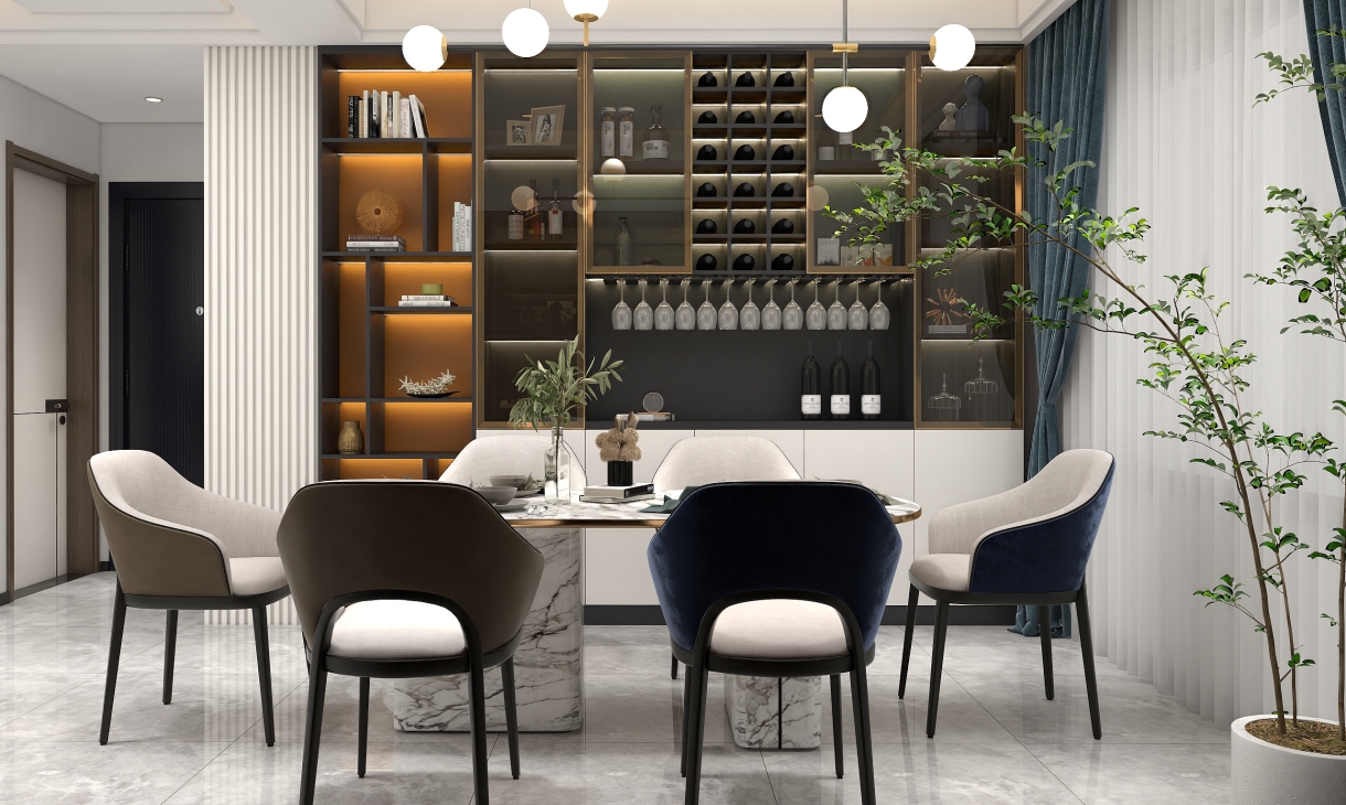 每個空間至少2張效果圖+1張全案全景圖展示,方案描述完整,所有空間需命名。