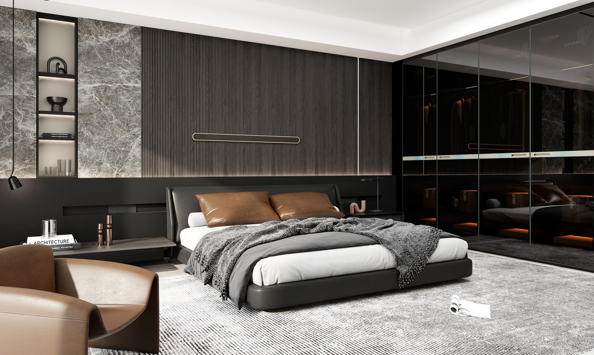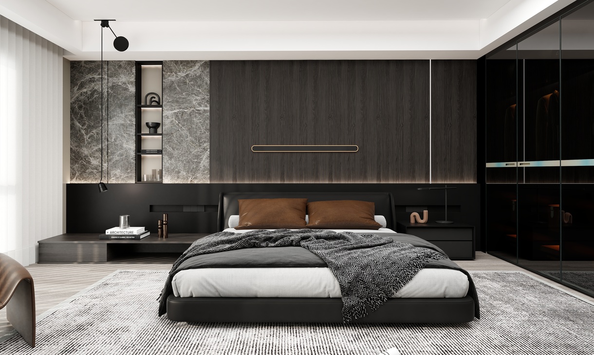 黑白灰現代風格是一種非常流行的室內設計趨勢,特別是在臥室設計中。這種風格以其簡潔、經典且具有現代感的外觀而受到歡迎。下面是一些黑白灰現代風格設計的關鍵要素: 1. **色彩選擇**: - **黑色**:通常用于強調和創造對比,可以體現在家具、裝飾品或者局部墻面。 - **白色**:作為基調色,能夠增加空間的明亮度和寬敞感。 - **灰色**:介于黑白之間,起到調和作用,使得空間不過于刺眼或單調。 - **輔助色**:有時候也會加入少量的其他顏色作為點綴,比如金屬色(金色、銀色)、木質色或者柔和的冷暖色來增添活力。 2. **材質搭配**: - **木材**:溫暖的木質元素可以平衡冷色調,增加溫馨感。 - **金屬**:如不銹鋼或銅制飾品可以增添現代感。 - **織物**:使用不同紋理的織物,如棉、麻、絨布等,可以增加層次感。 3. **家具選擇**: - **簡潔線條**:家具傾向于簡潔明快的線條,避免過多復雜的裝飾。 - **功能性**:注重實用性和功能性,例如內置衣柜、多功能儲物床等。
