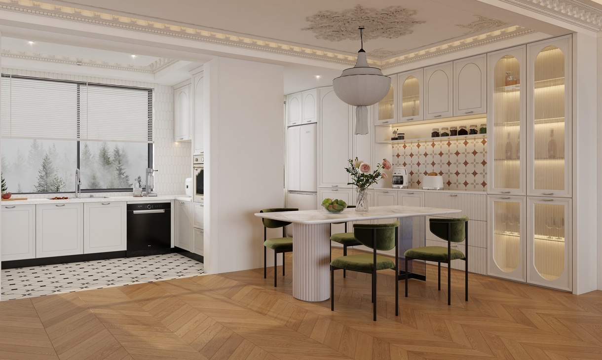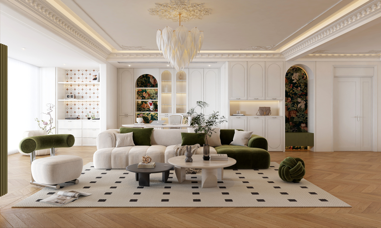 這是一套奶油風格的裝修案例。本案屋主是一對年輕的夫婦,從事互聯網工作,快節奏的生活讓他們追求三餐四季的靜謐與安然,希望家是一個純粹治愈的空間。運用奶油色調,融入弧形元素,頗具侘寂格調。客餐廳一體化設計+開放式廚房,形成南北通透的格局,餐廳定制島臺,充當廚房的備餐區。希望你們喜歡。