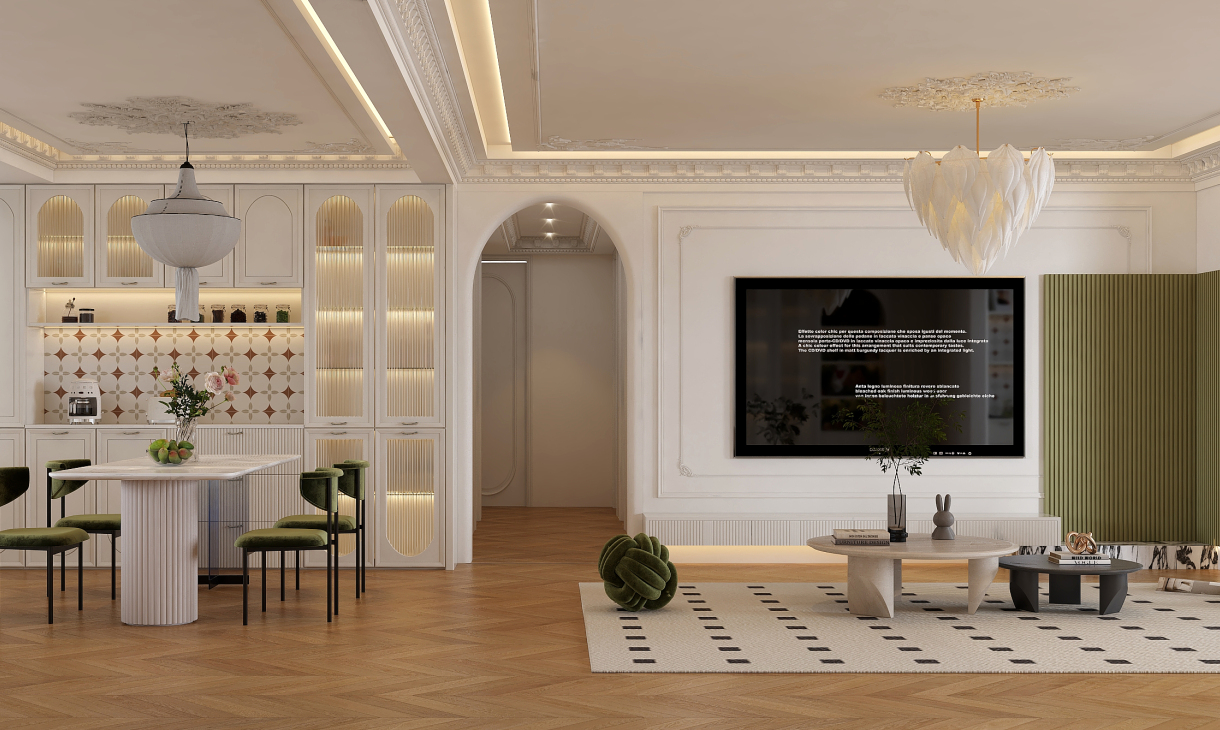 每個空間至少2張效果圖+1張全案全景圖展示,方案描述完整,所有空間需命名。