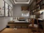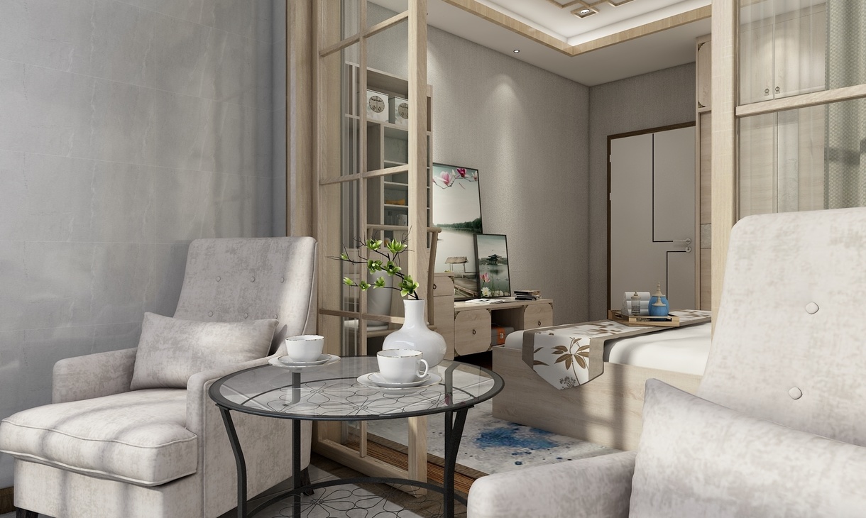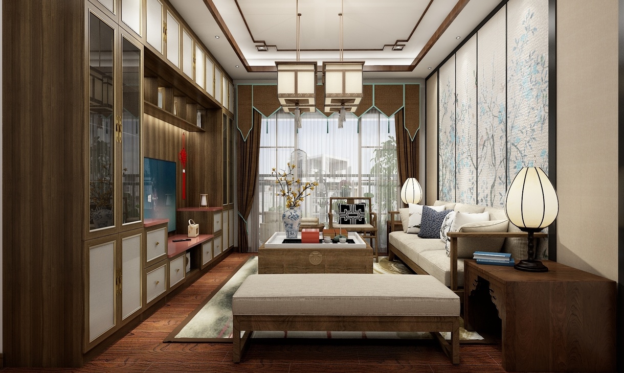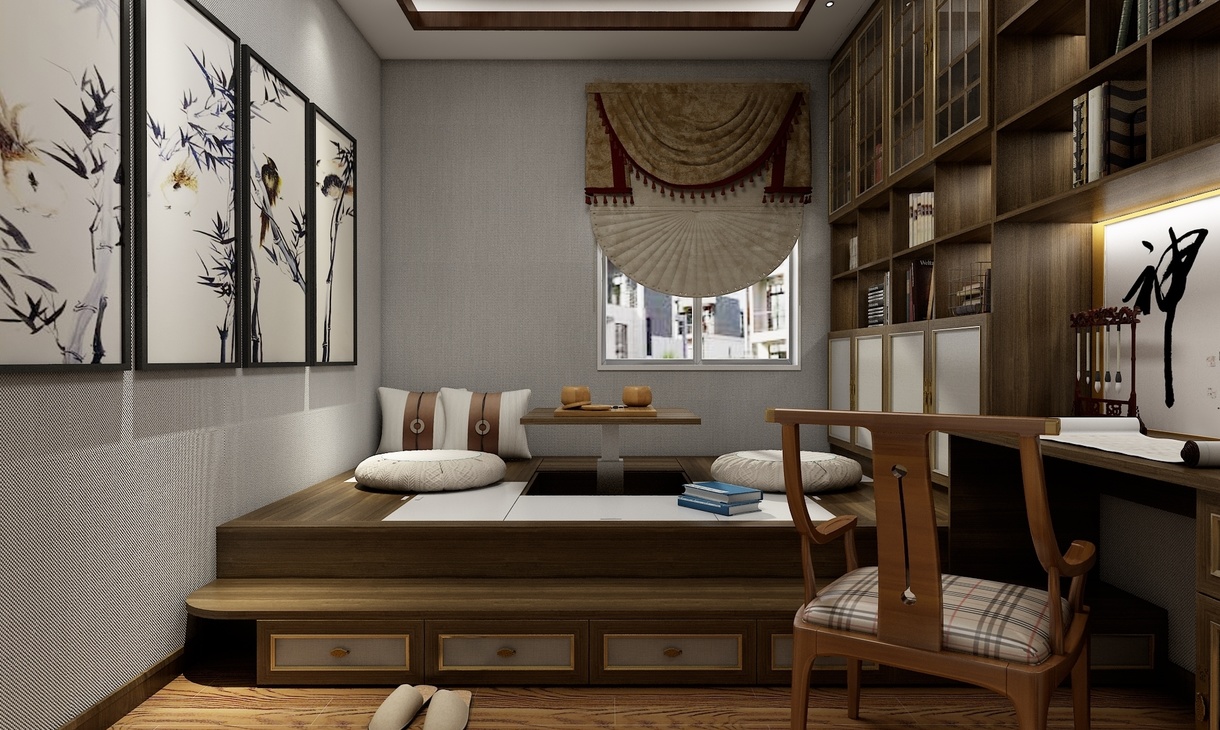 李教授是山西大同一所知名大學的文學教授,即將要退休,具有古典情懷,同時又追求現代時尚。子女各自在外,偶爾回來居住看望兩老。為了將現代元素融入到傳統元素里,故為李教授設計了一套新中式風格的住所;體現出素雅清凈、含蓄內斂且精致宜用的中式家居;使人耳目一新,富有東方生活詩意。戶型是兩房兩廳一廚一衛,采光性好,具有3個陽臺;次臥改成多功能榻榻米房,集書房、客臥、茶室、棋房、儲物等多種功能于一體的實用空間;三個陽臺分別設計為廚房-盥洗陽臺,客廳-花草養鳥種植陽臺,主臥-休閑陽臺。