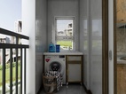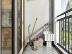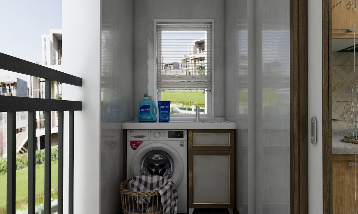廚房外的陽臺,采光性好,設計為盥洗陽臺,洗衣曬衣,以及存放清潔用具