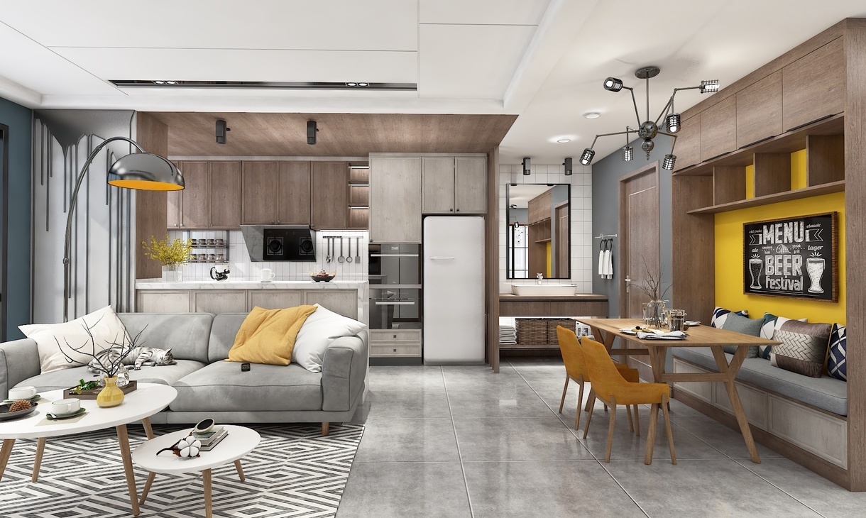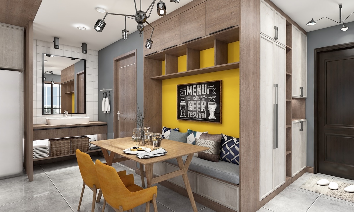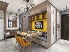 本方案專為一對90后小夫妻設計,由于屋主喜愛北歐風格,在色彩的中和和運用上設計師也進行著巧妙的搭配。以木色與灰色營造出潔凈利落的視覺效果,木色是象征自然的色彩,又以黃色做為點綴,讓家更靈動,讓屋主能夠卸下疲憊回歸家的懷抱。