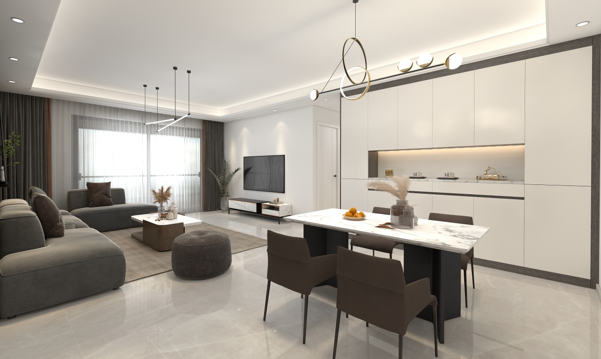 每個空間至少2張效果圖+1張全案全景圖展示,方案描述完整,所有空間需命名。