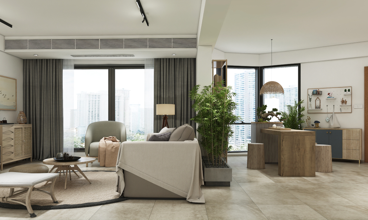 每個(gè)空間至少2張效果圖+1張全案全景圖展示,方案描述完整,所有空間需命名。