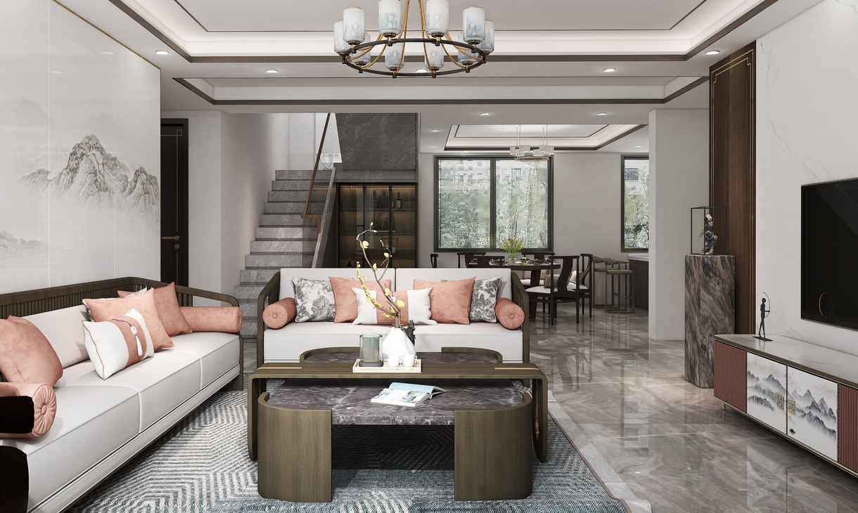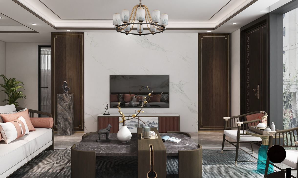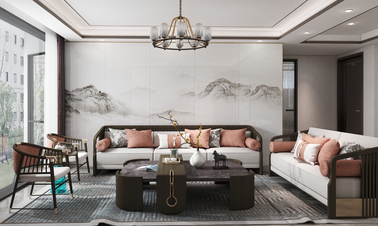 硬包山水畫沙發背景,巖板電視背景,節省預算的同時出效果,設計V15988088660