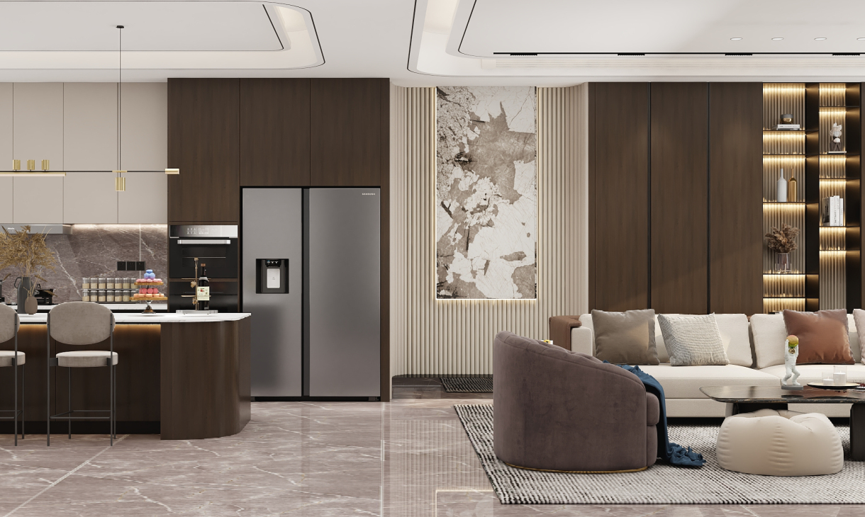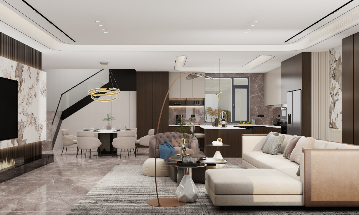 輕奢極簡的客餐廳,富有空間層次感的同時也顯示出極美的質感。